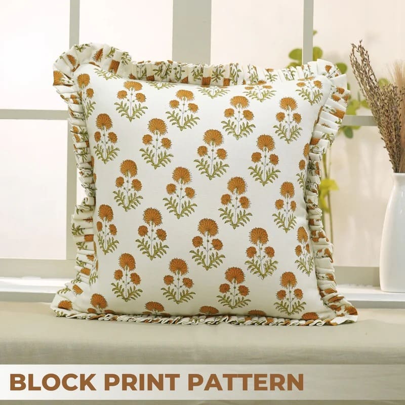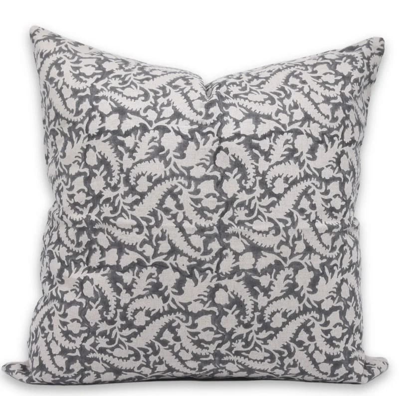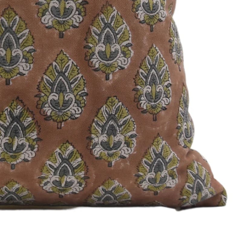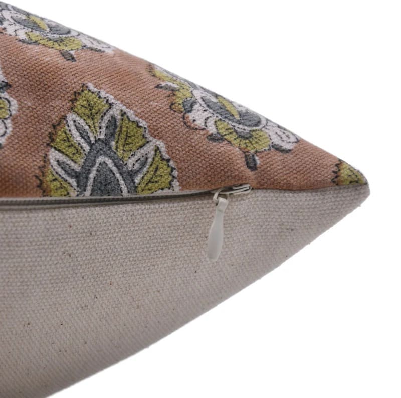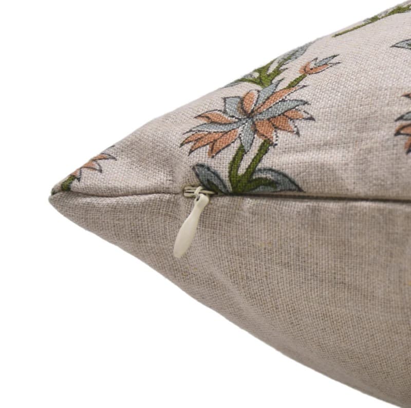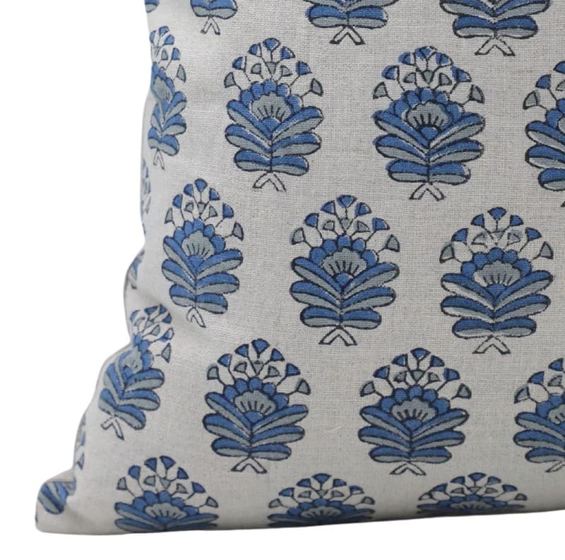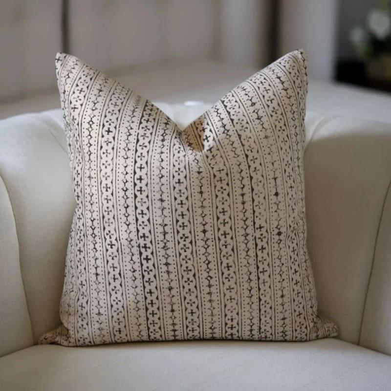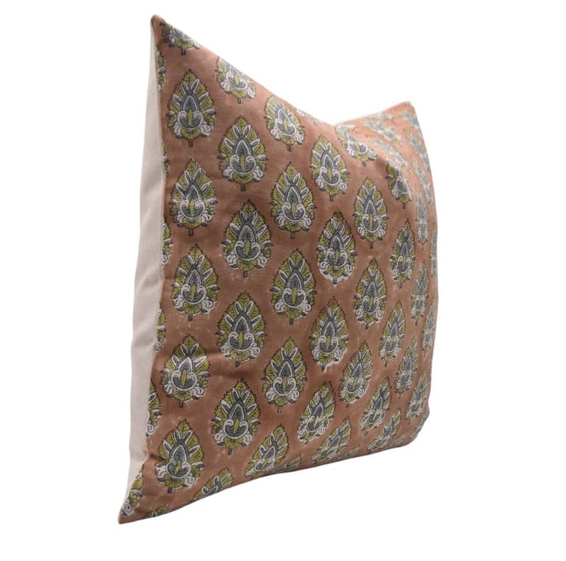 Block print pure linen throw pillow cover- ARADHANA - Fabdivine
