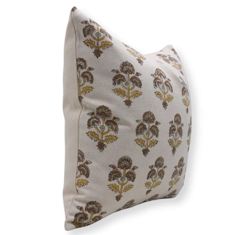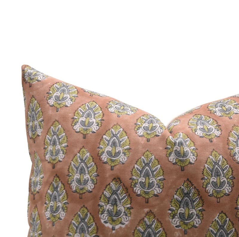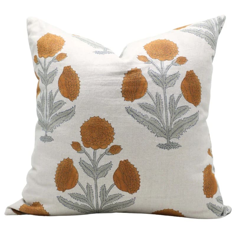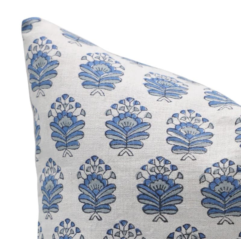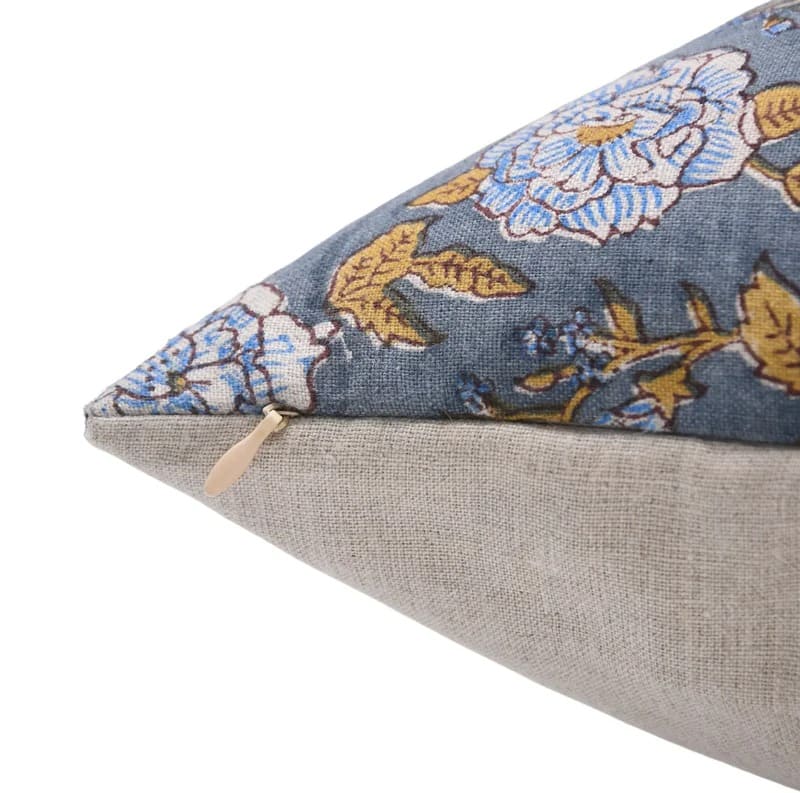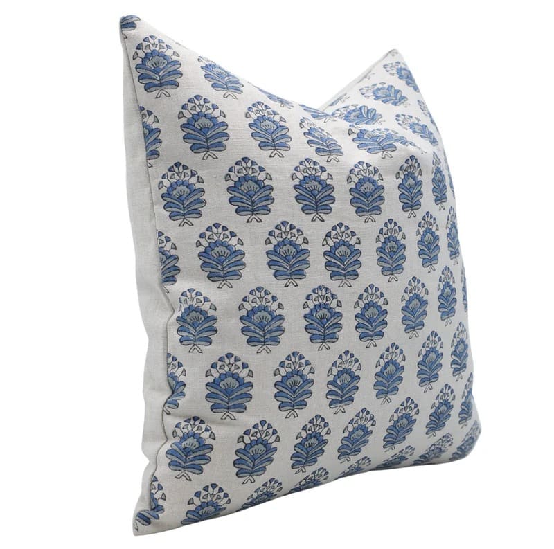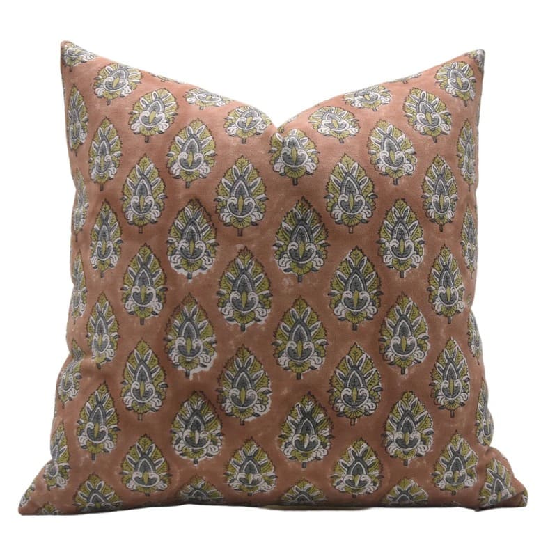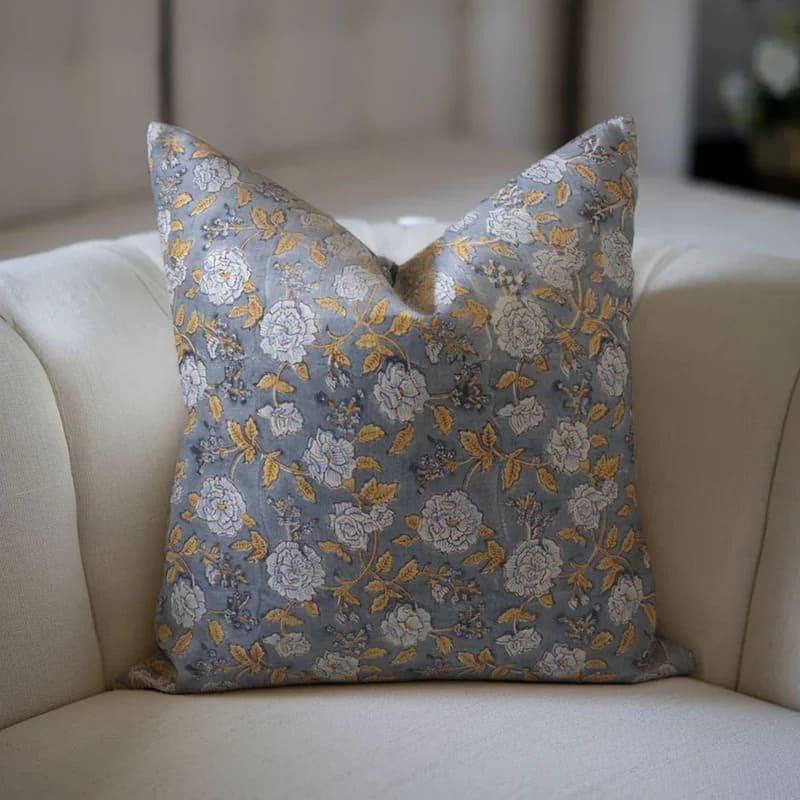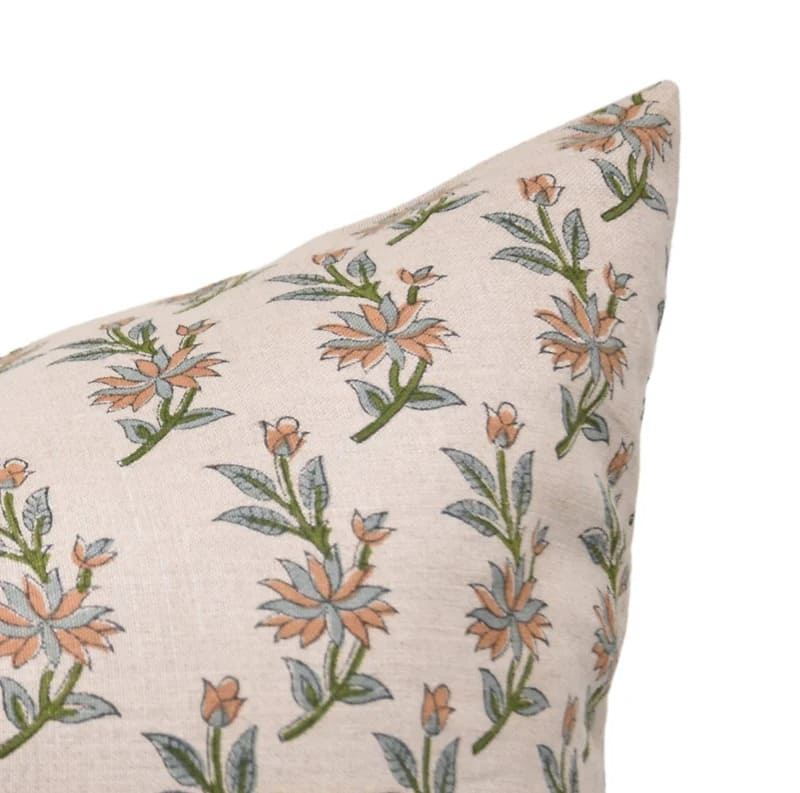 Block print pure linen throw pillow cover- ARADHANA - Fabdivine