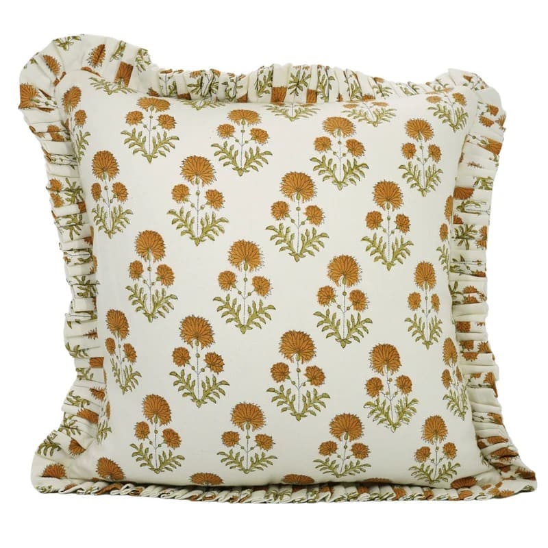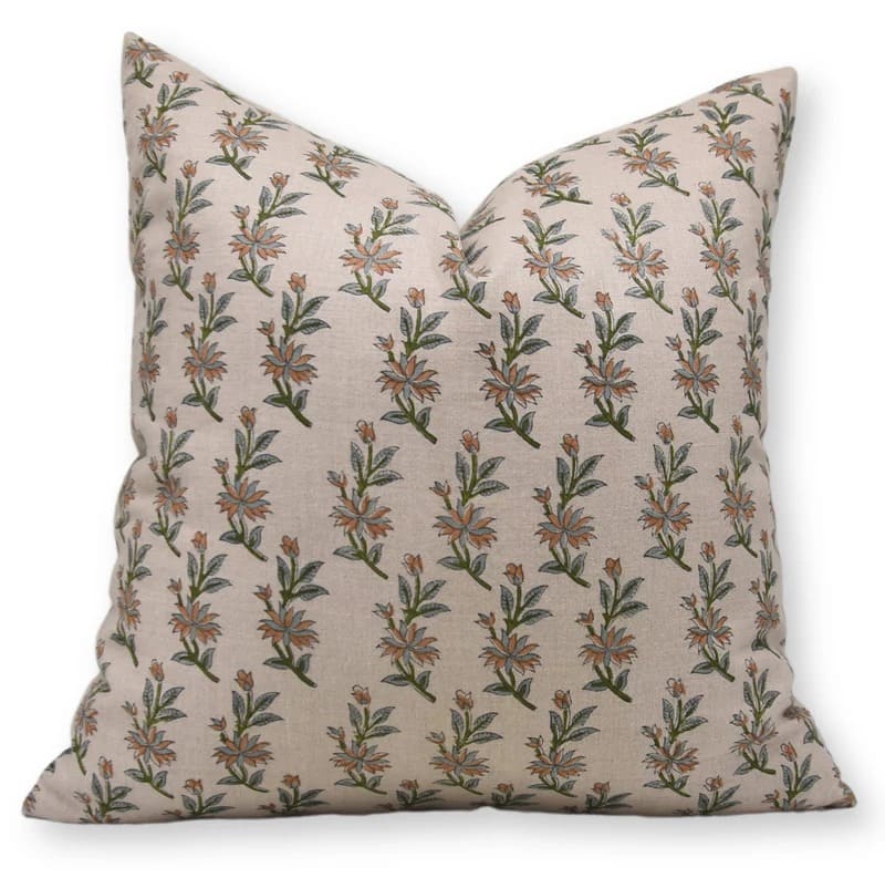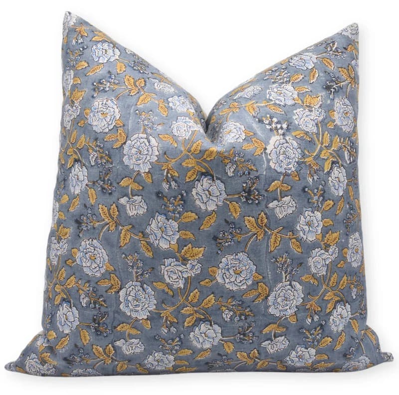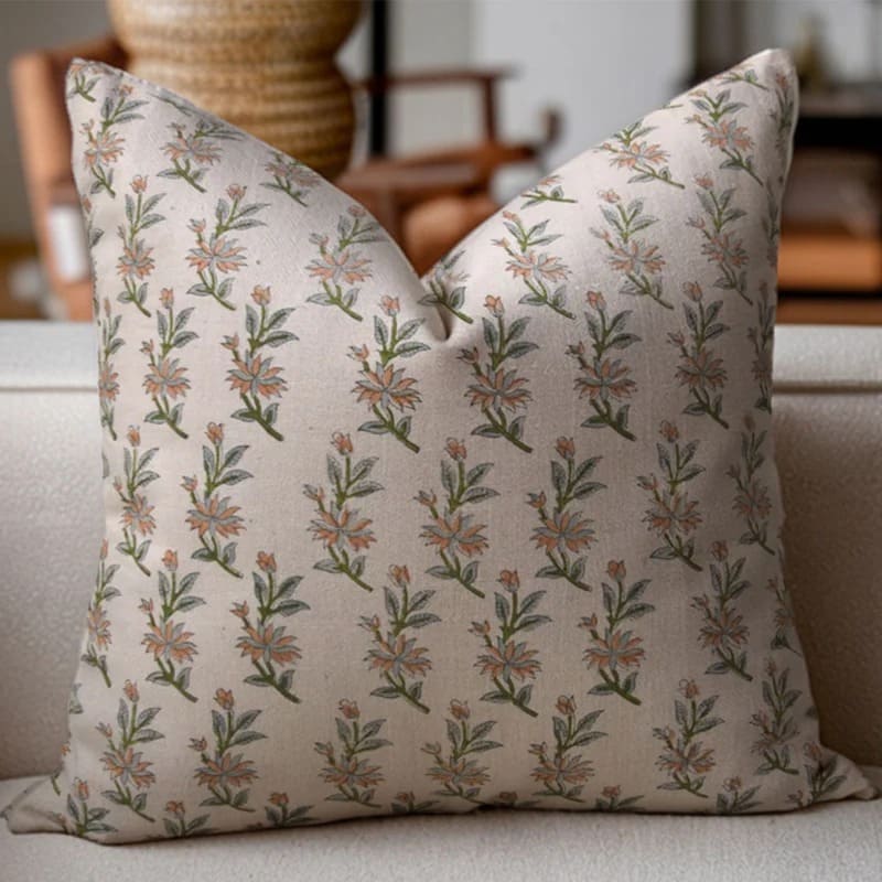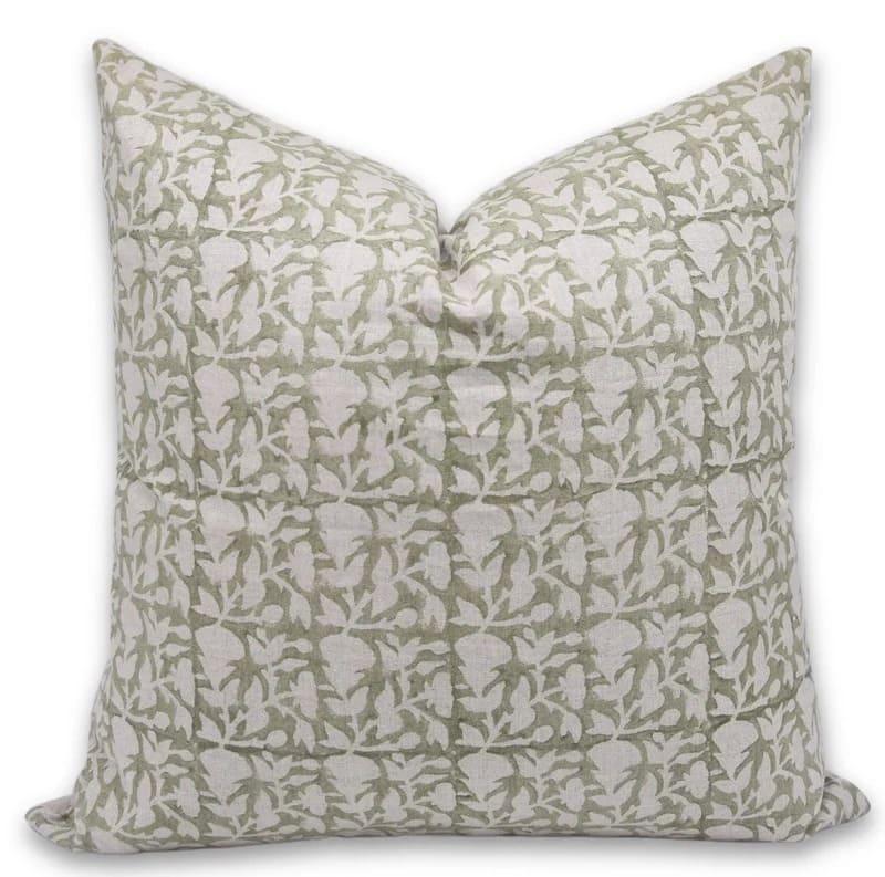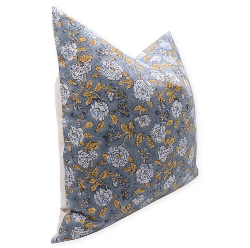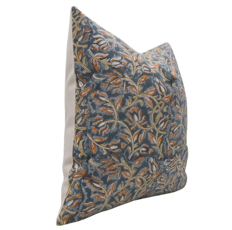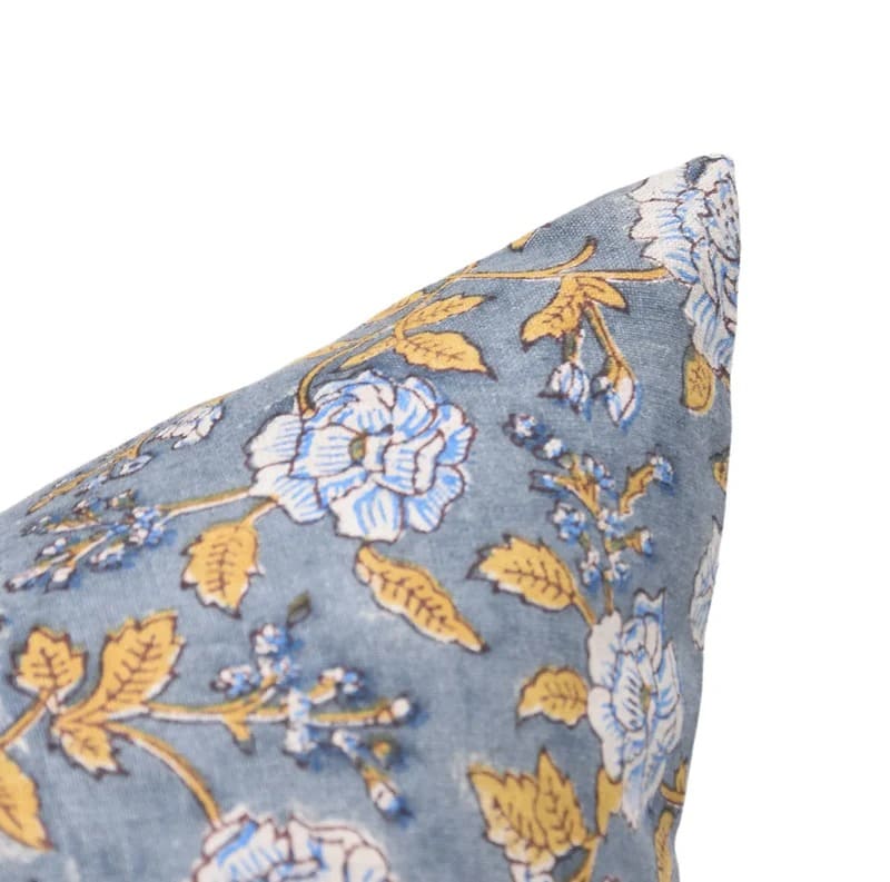 Block print pure linen throw pillow cover- ARADHANA - Fabdivine