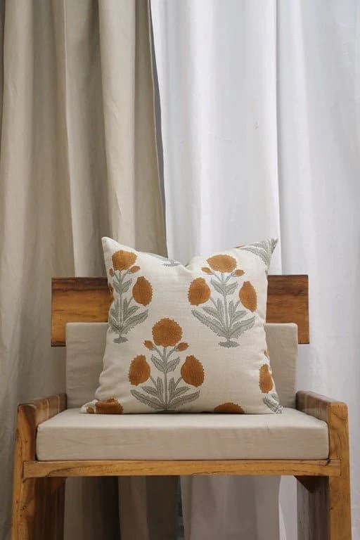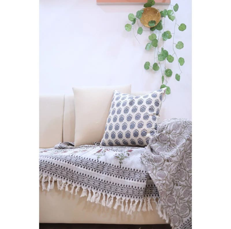 Block print Pillow cover for sofa, couch or bed- thick linen- GULDASTA - Fabdivine