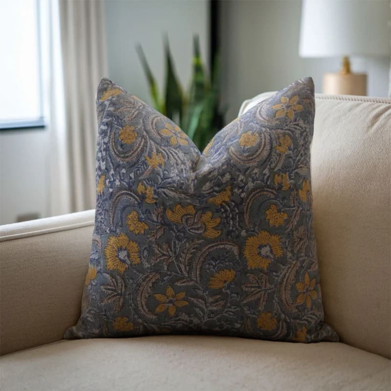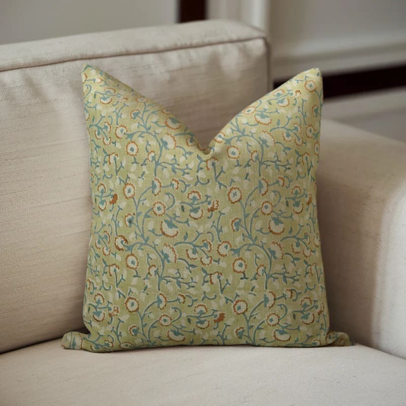 Decorative pillow with floral pattern on a beige background