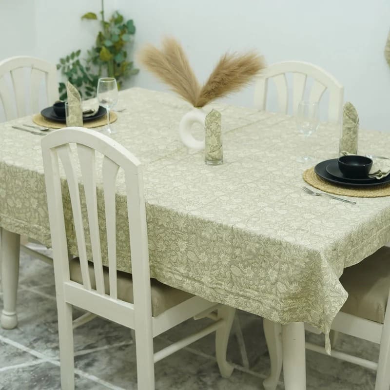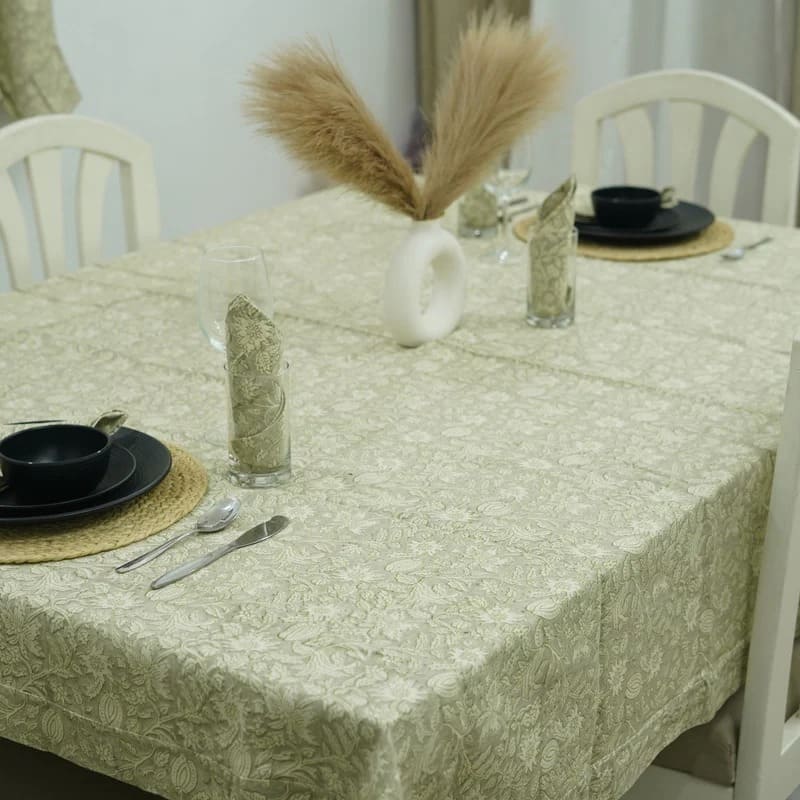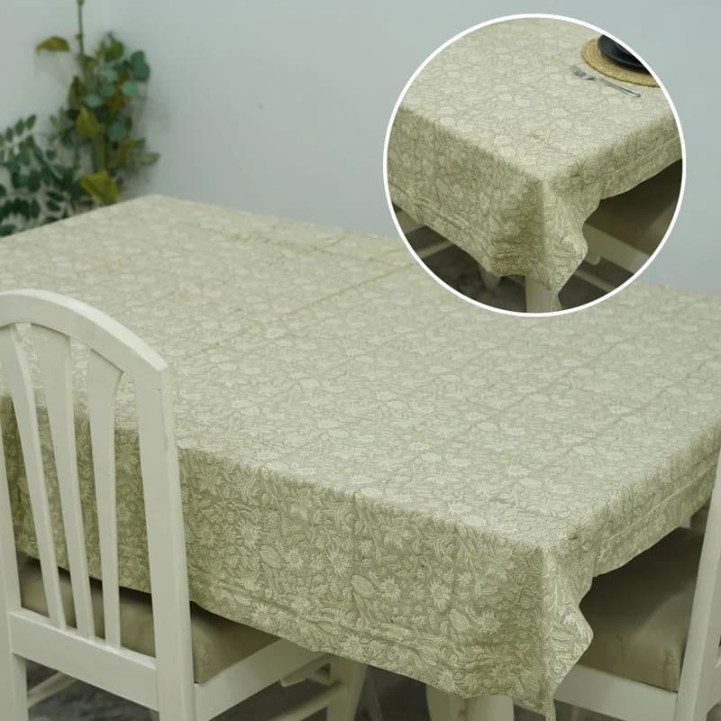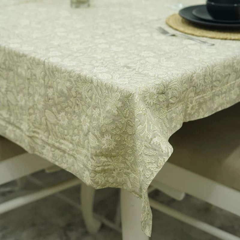 Classic Floral Hand-Block Printed Duck Canvas Custom Tablecloth – Manikarnika By Fabdivine