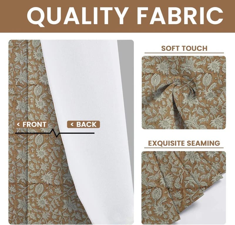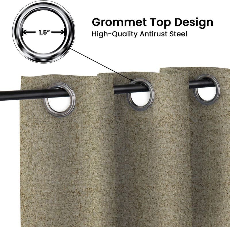 Blackout Floral Linen Grommet Curtains  Room Darkening Drapery for Stylish Window Treatment - Bijhni