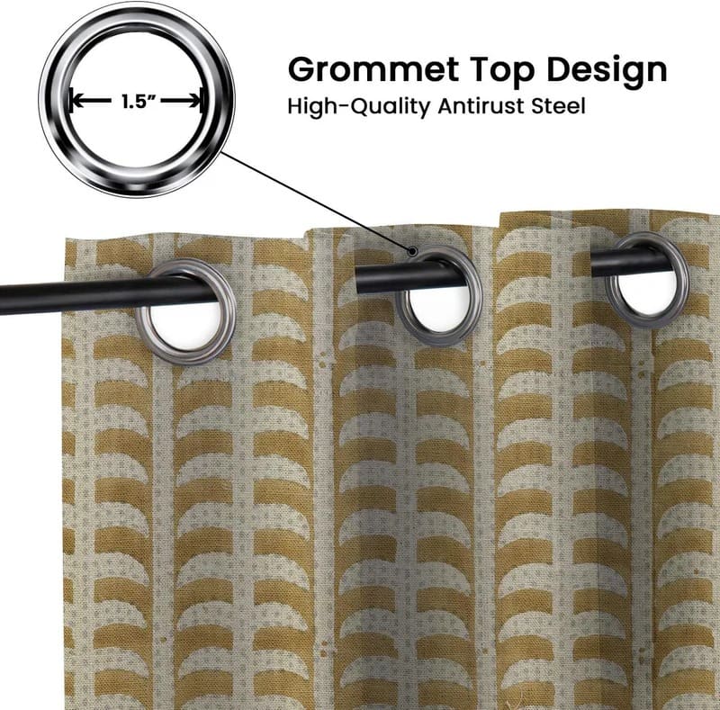 Blackout Linen Ring Curtain with Hand Block Print Farmhouse Window Treatment - Tarz