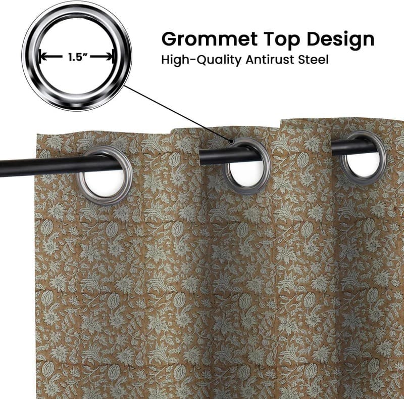 Room Darkening Floral Linen Ring Curtain Hand Block Printed Blackout Drapery - Damaru