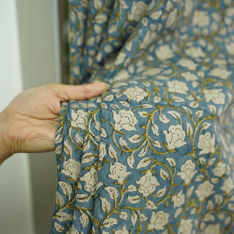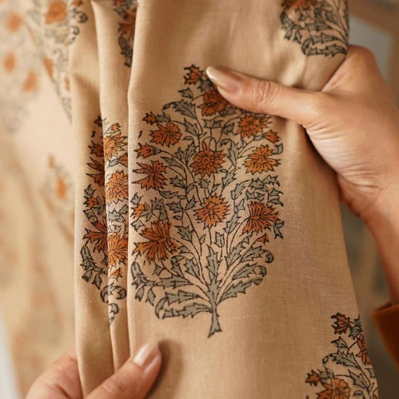 Block Print Floral Curtain: SAAT PATTI - Fabdivine