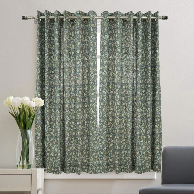 Blackout Floral Linen Curtain for Window Door Hand Block Printed - Devdas