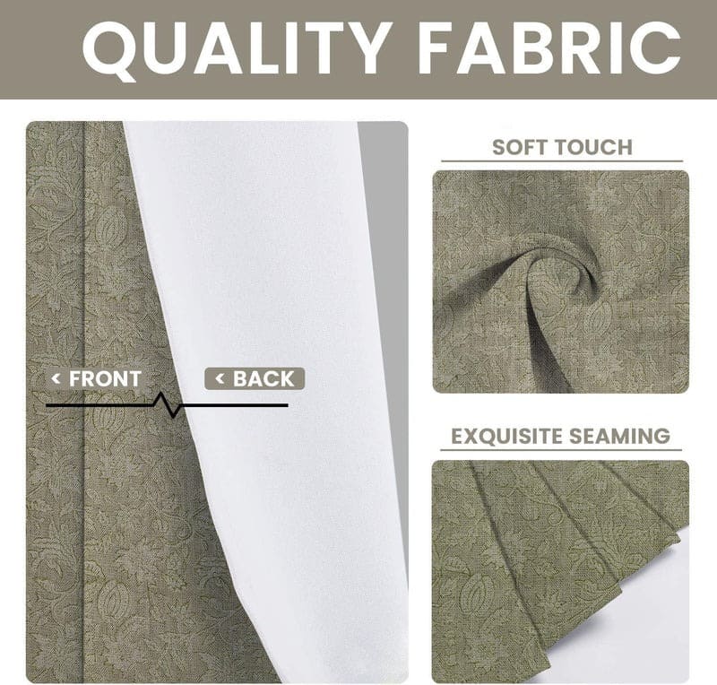 Floral Print Linen Curtains - Beige Window Valance  Shades for Elegant Living Décor - Qudrat