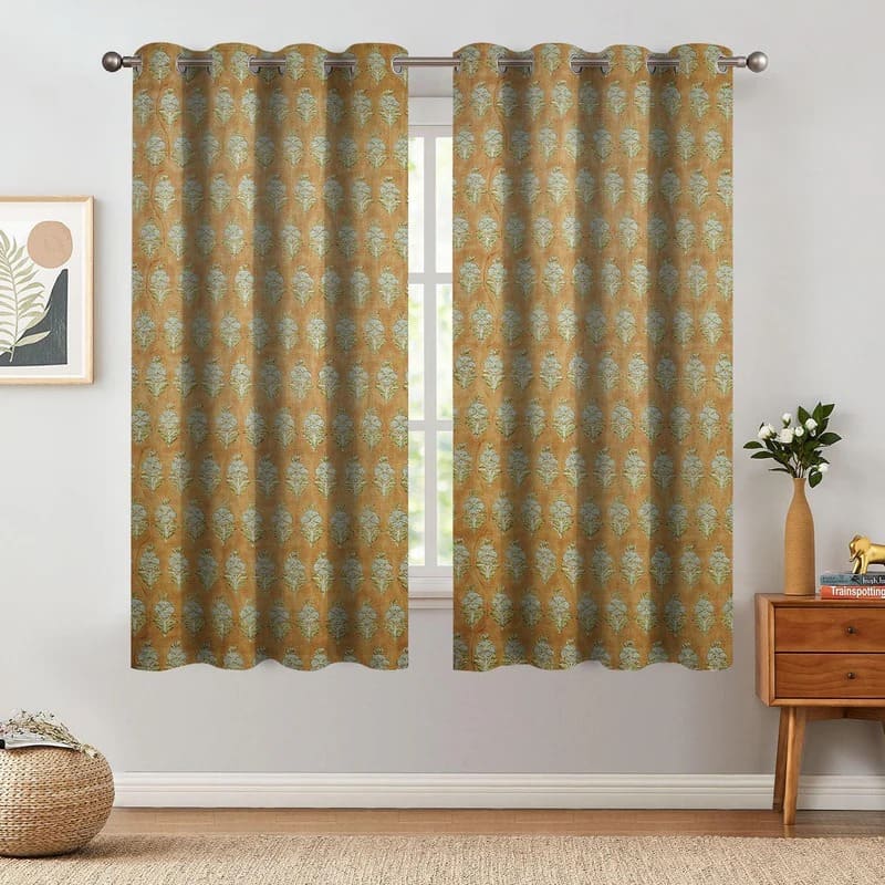 Block Print Floral Curtain: KOHINOOR - Fabdivine