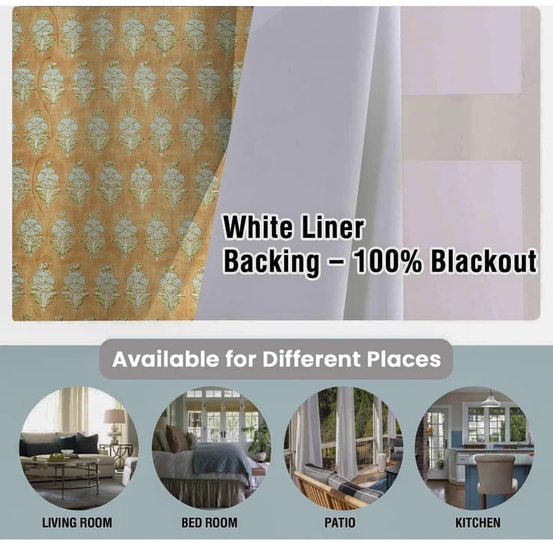 Block print blackout patterned curtains for living room