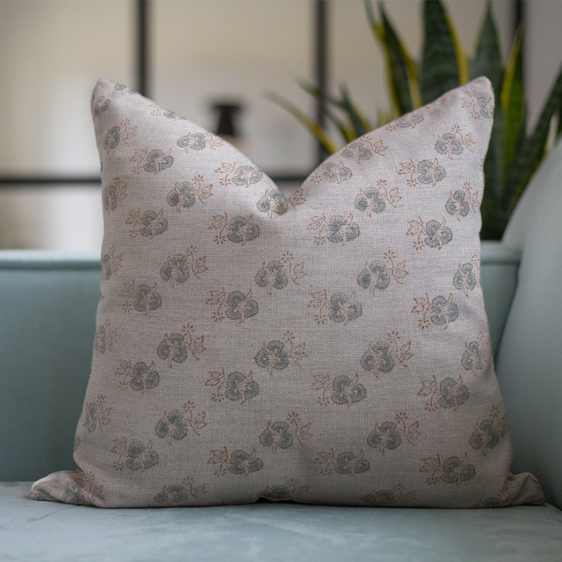 JUJU FLOWER Thick Linen Block Print Pillow Cover for Sofa, Couch, or Bed - Fabdivine