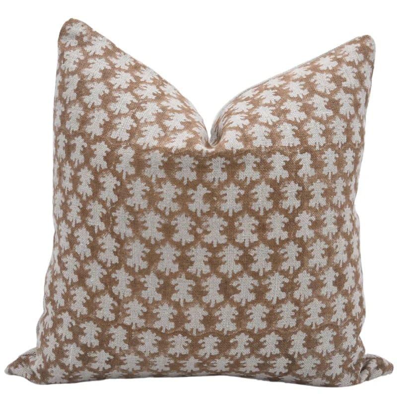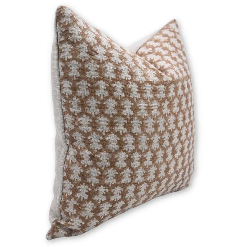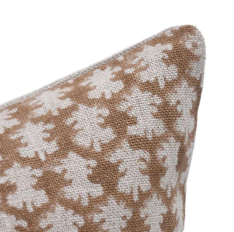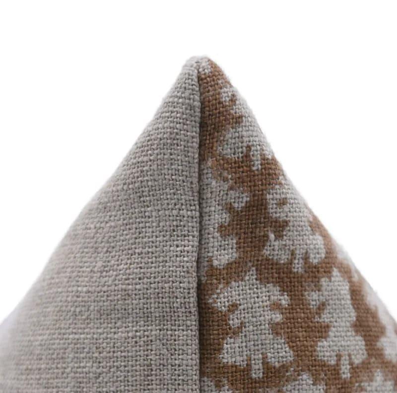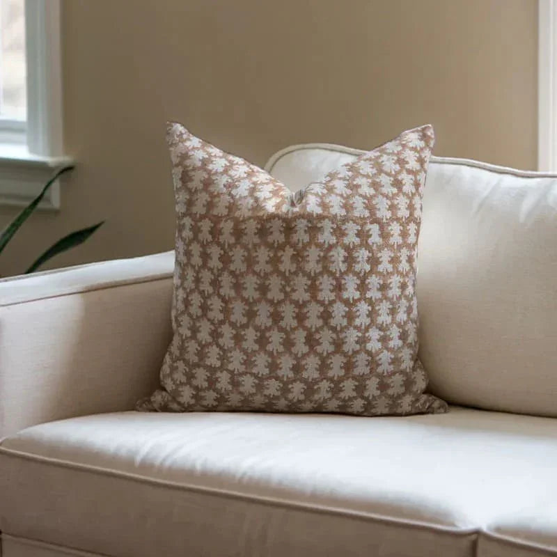 Decorative pillow with brown leaf pattern on a white background