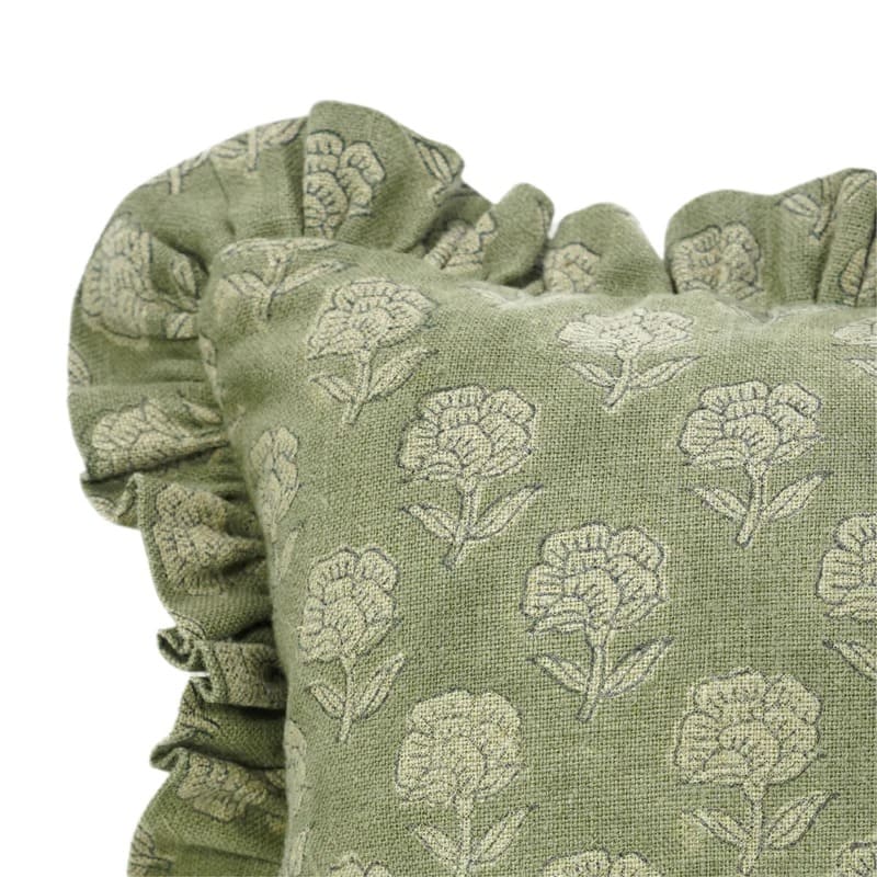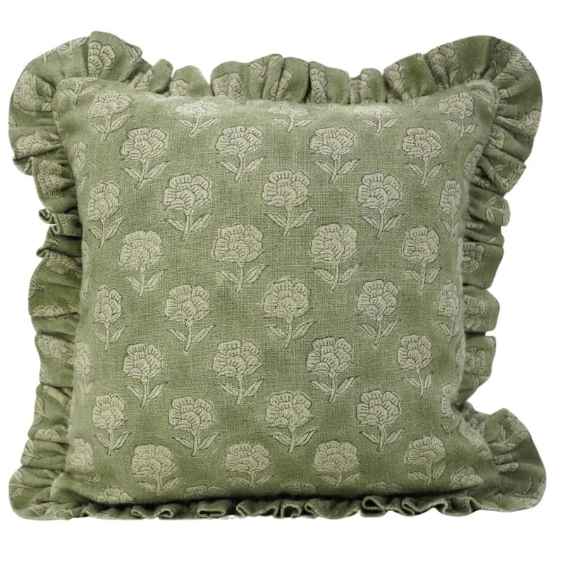 Fab Divine handblock print cushion cover in Sandhya Pushap design, linen blend fabric