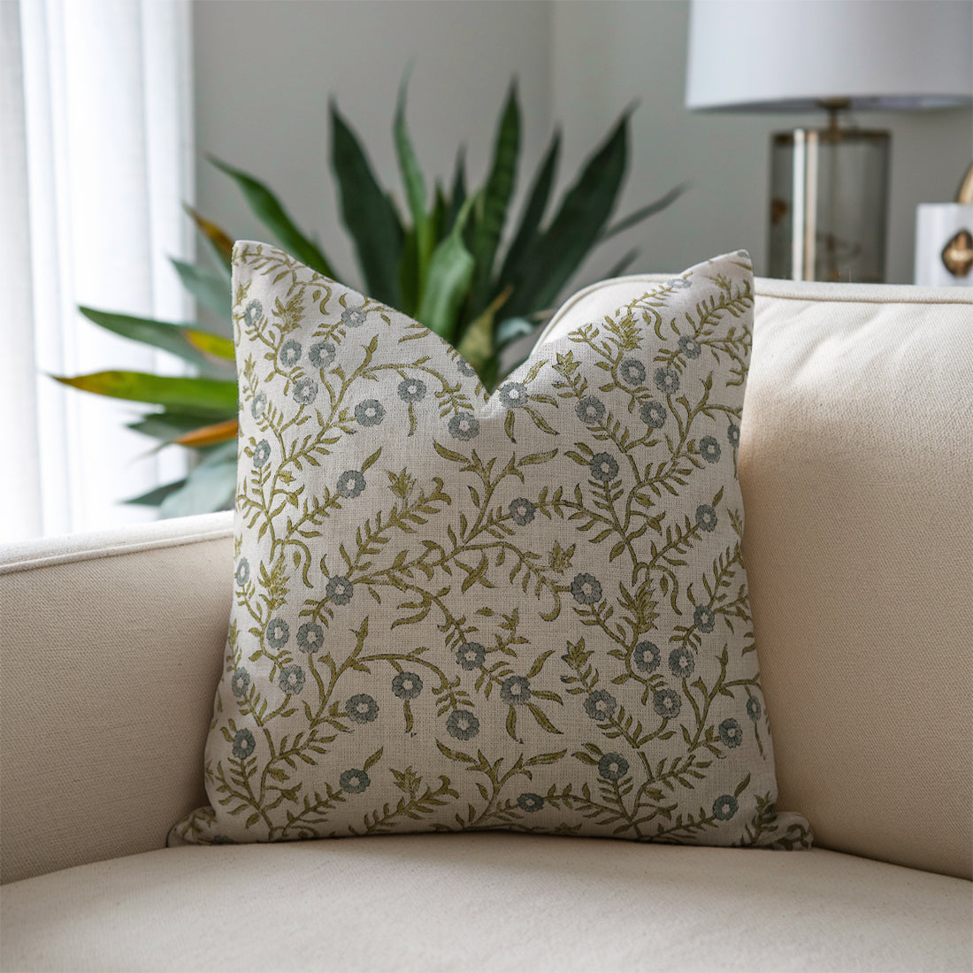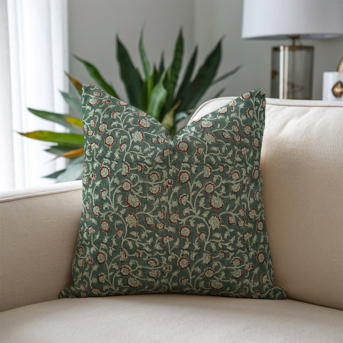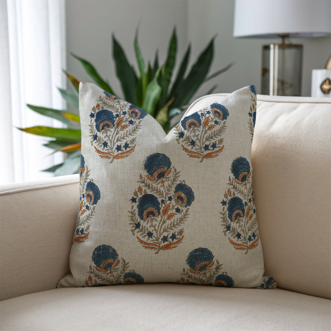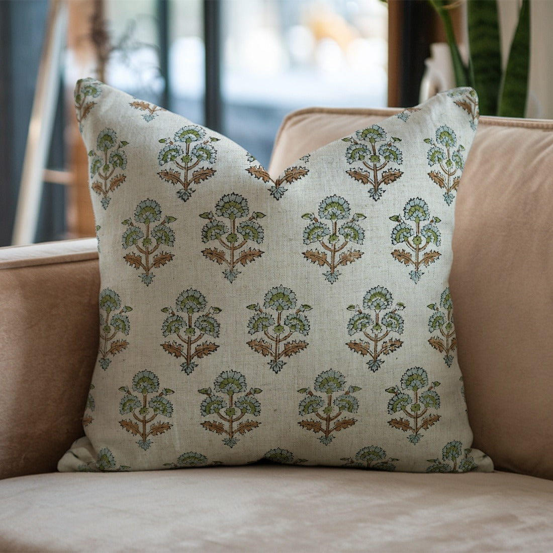 Block Printed Thick Linen Pillow Cover - Tulsi Buti