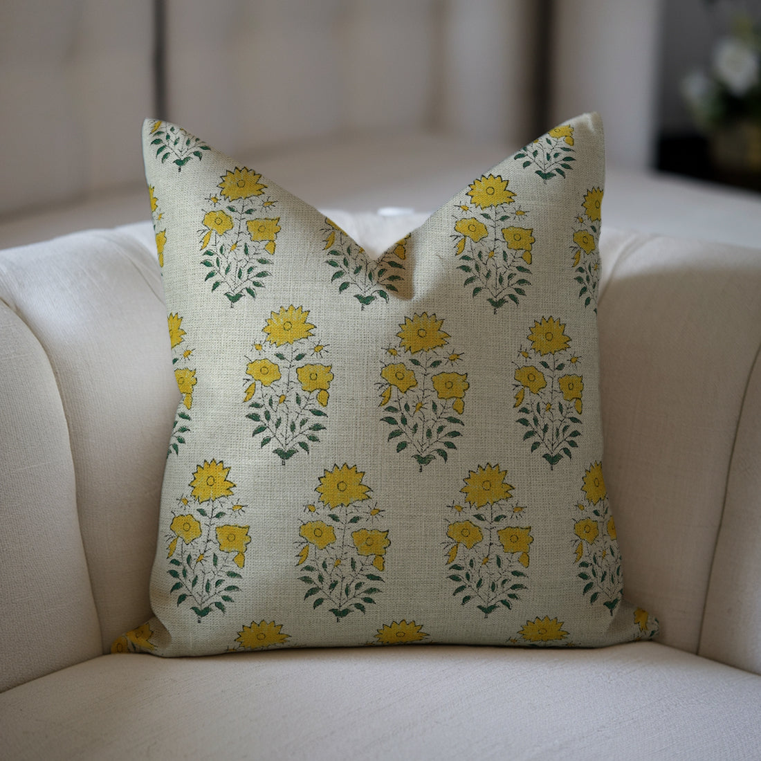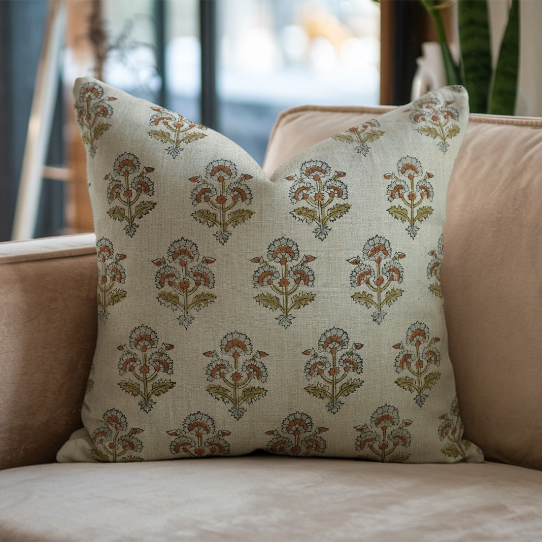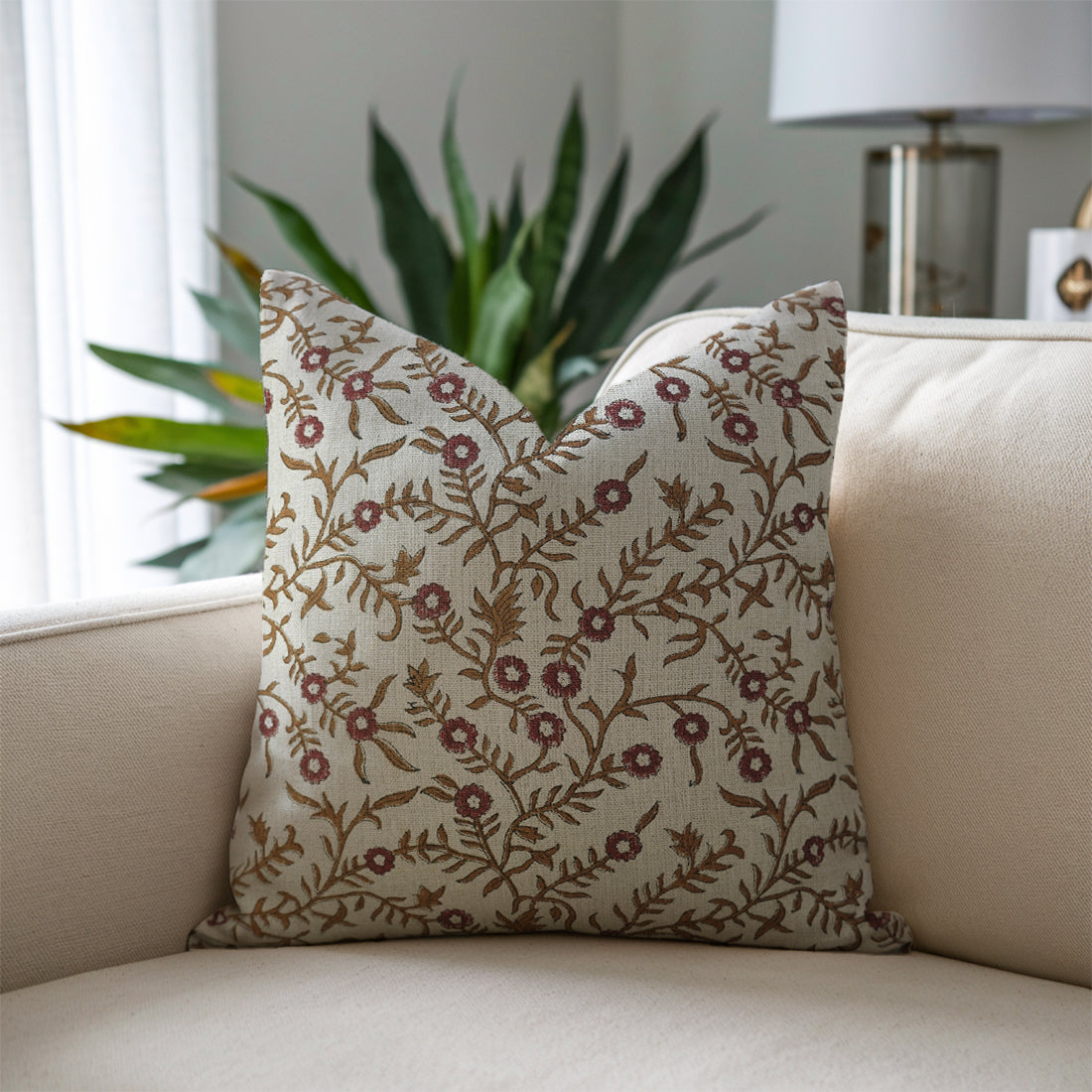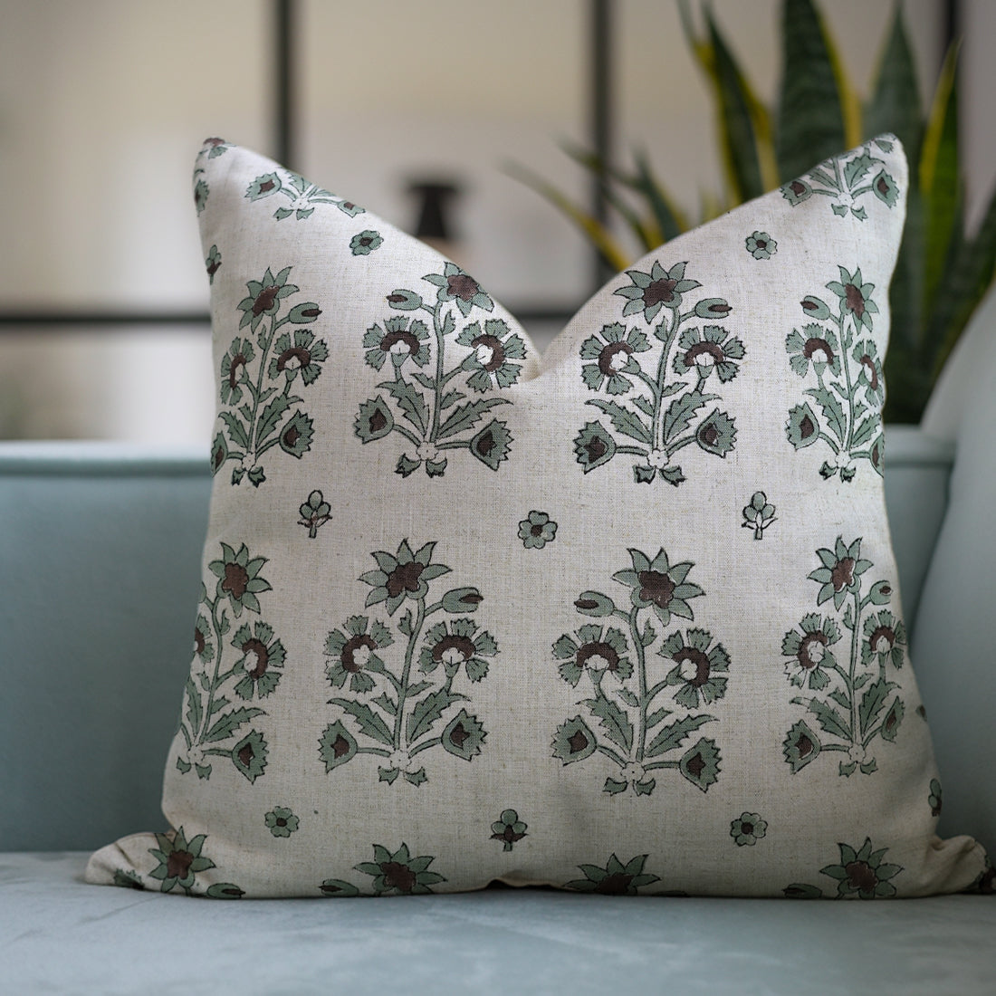 Block Printed Thick Linen Pillow Cover - Tulsi Buti