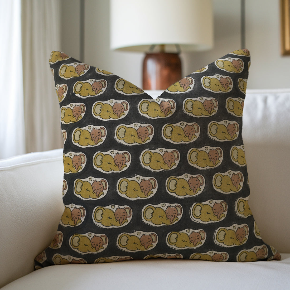 Elephant Handblock Printed Throw Pillow Covers for Couch - Black & Brown