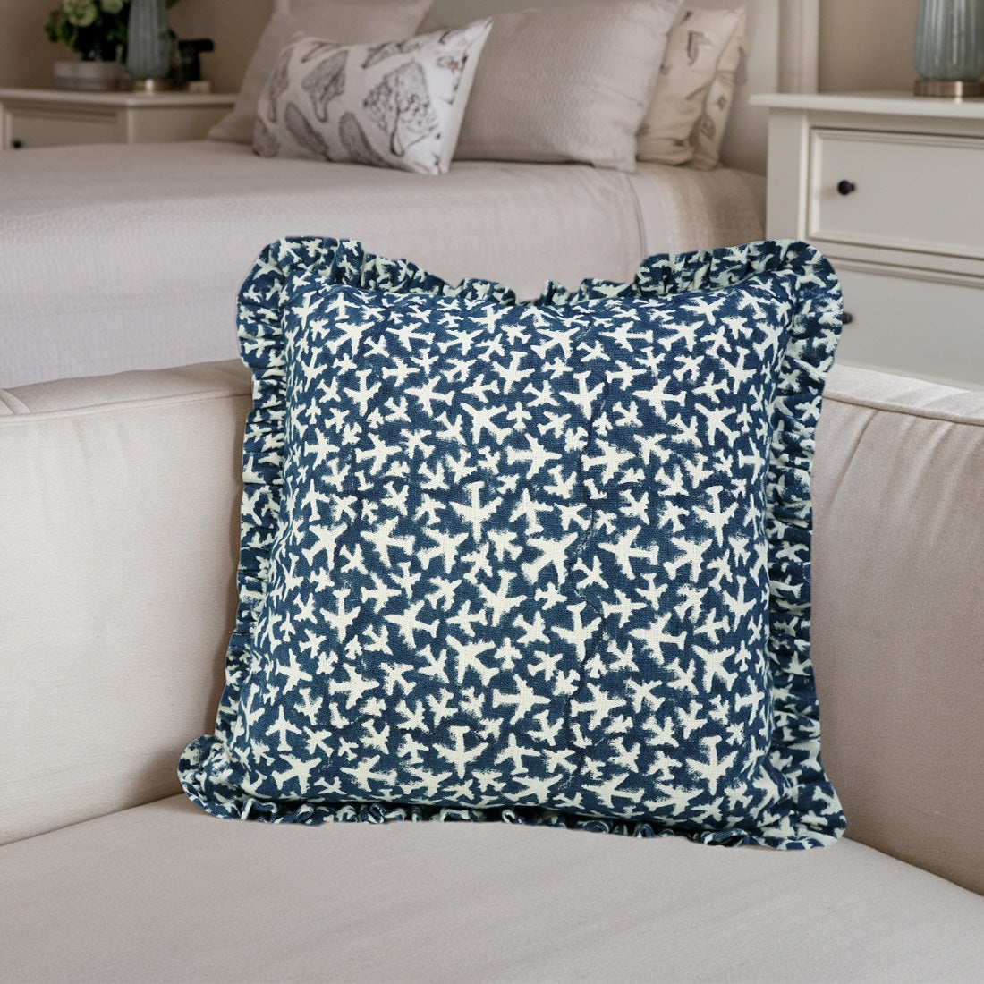 Pillow covers with blue accents are the ideal ones that can be added to sofas, armchairs, or beds. They can fit into any environment because of their standard sizes, such as 20x20 inches.