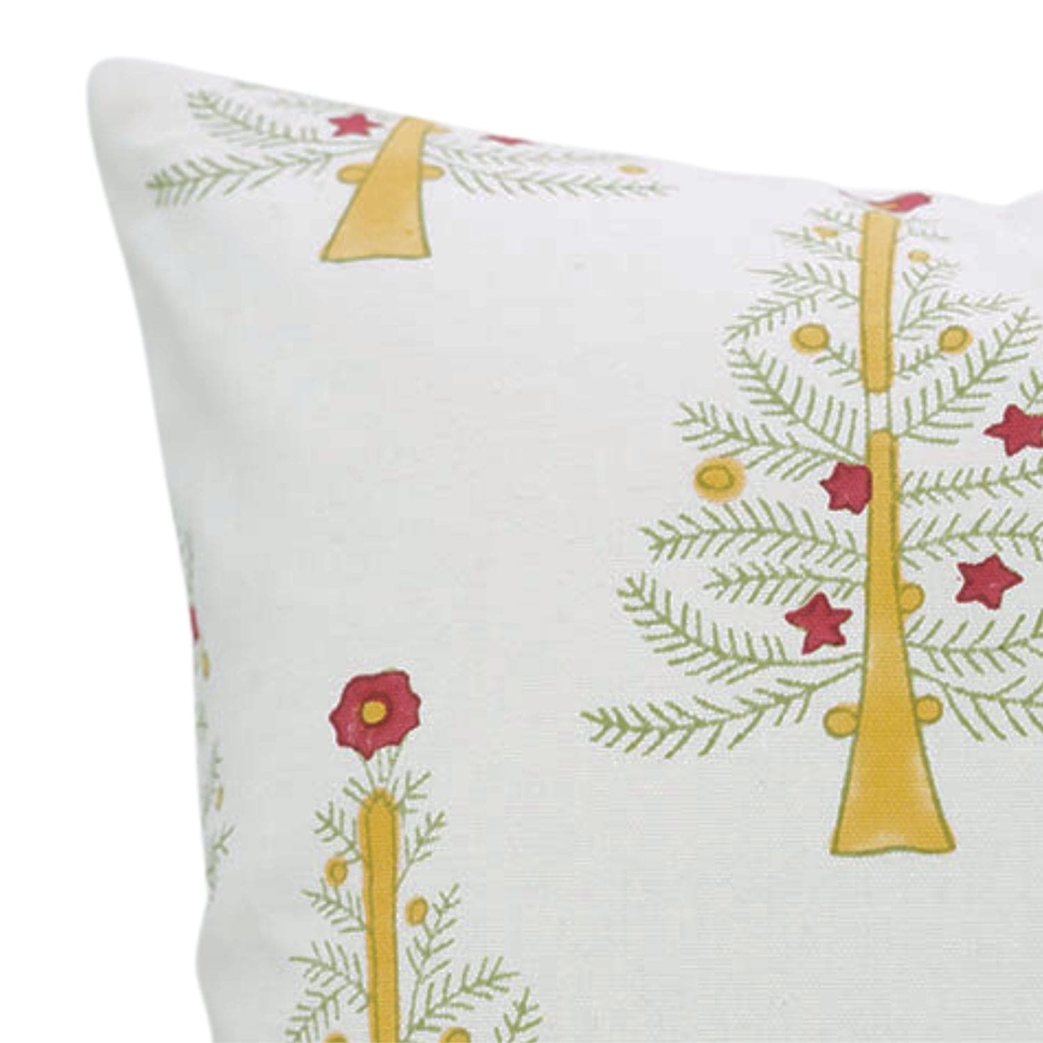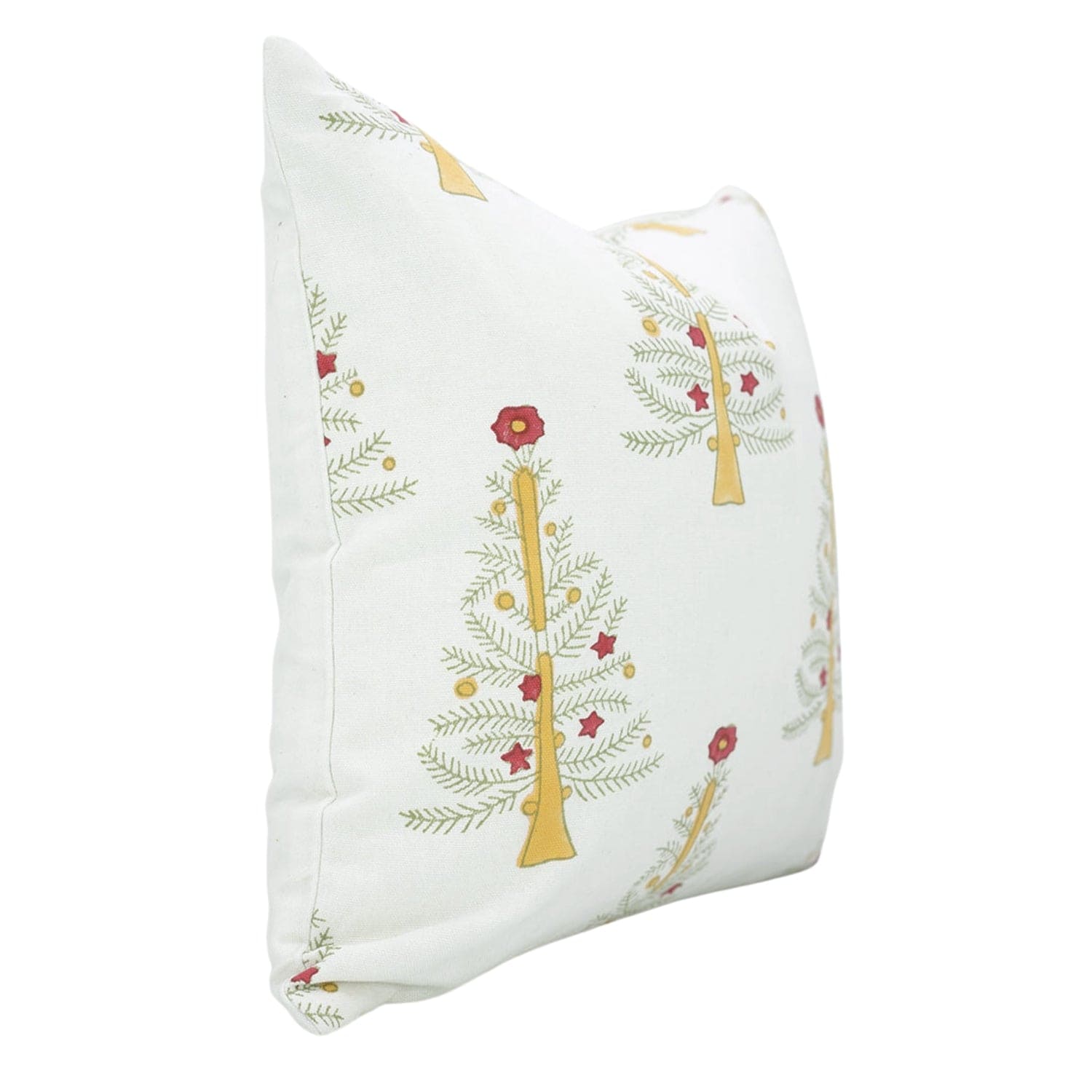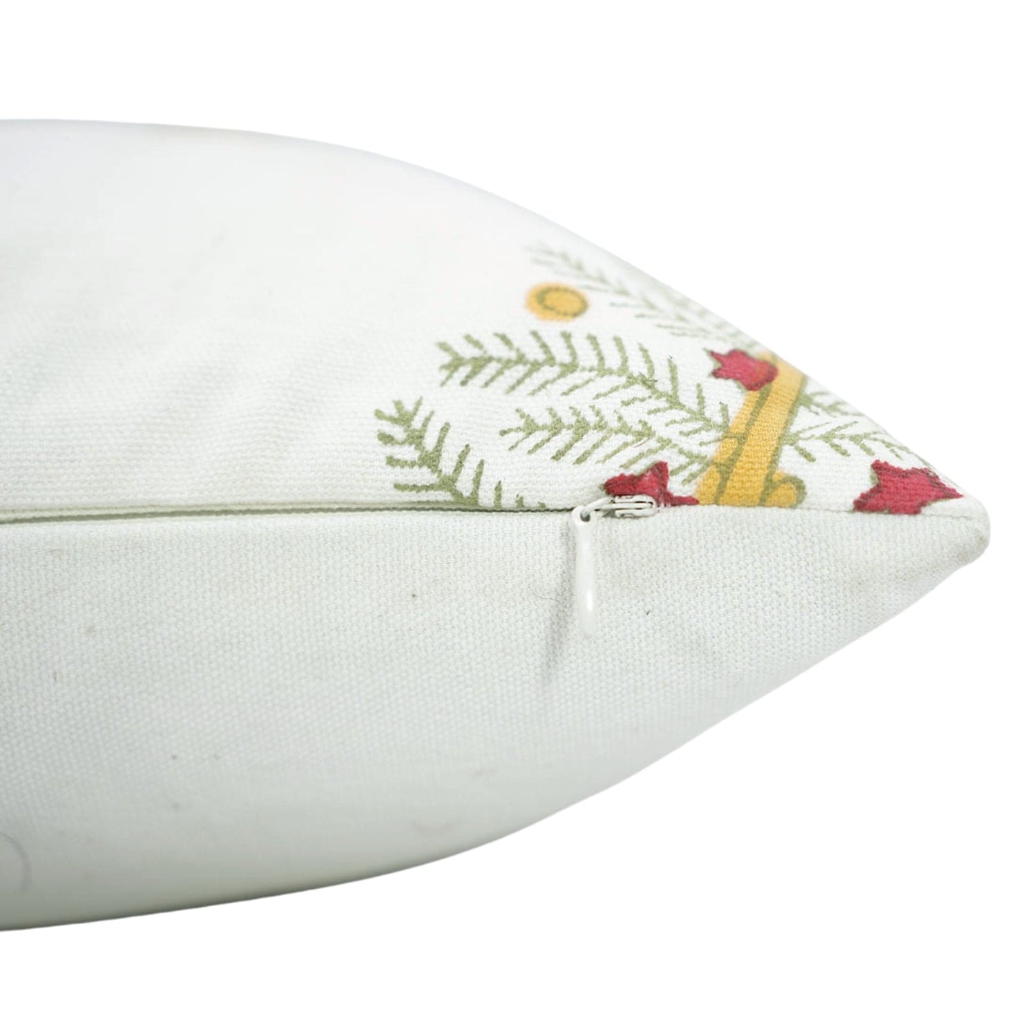 Hand Block Print Thick Cotton White Pillow Cover - TULSI BUTI - Fabdivine