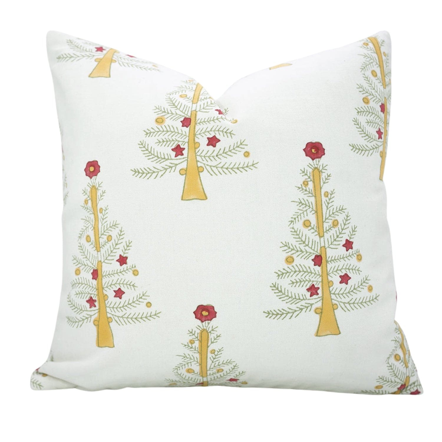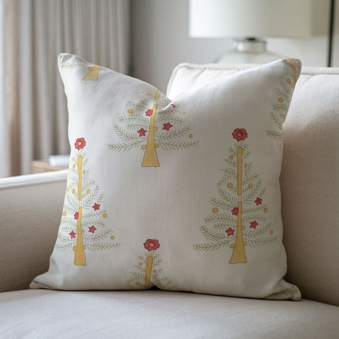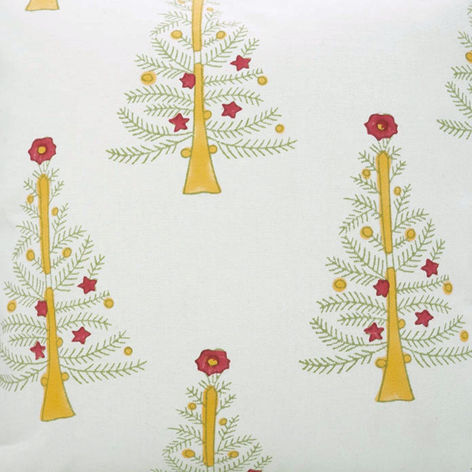 Hand Block Print Thick Cotton White Pillow Cover - TULSI BUTI - Fabdivine