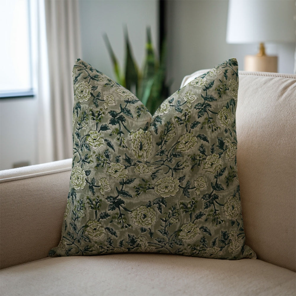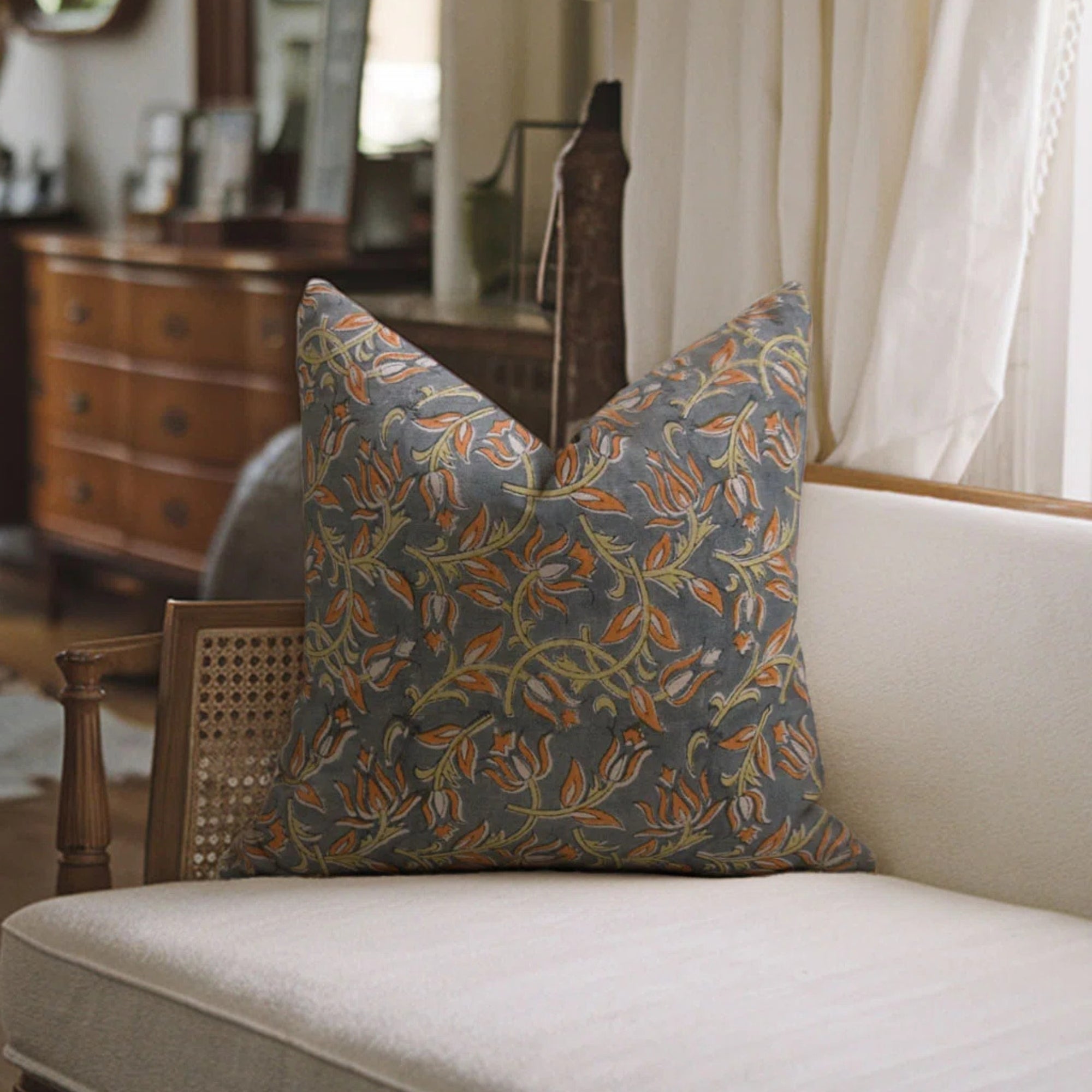 Block Print Cotton Pillow Cover - SARASWATI - Fabdivine
