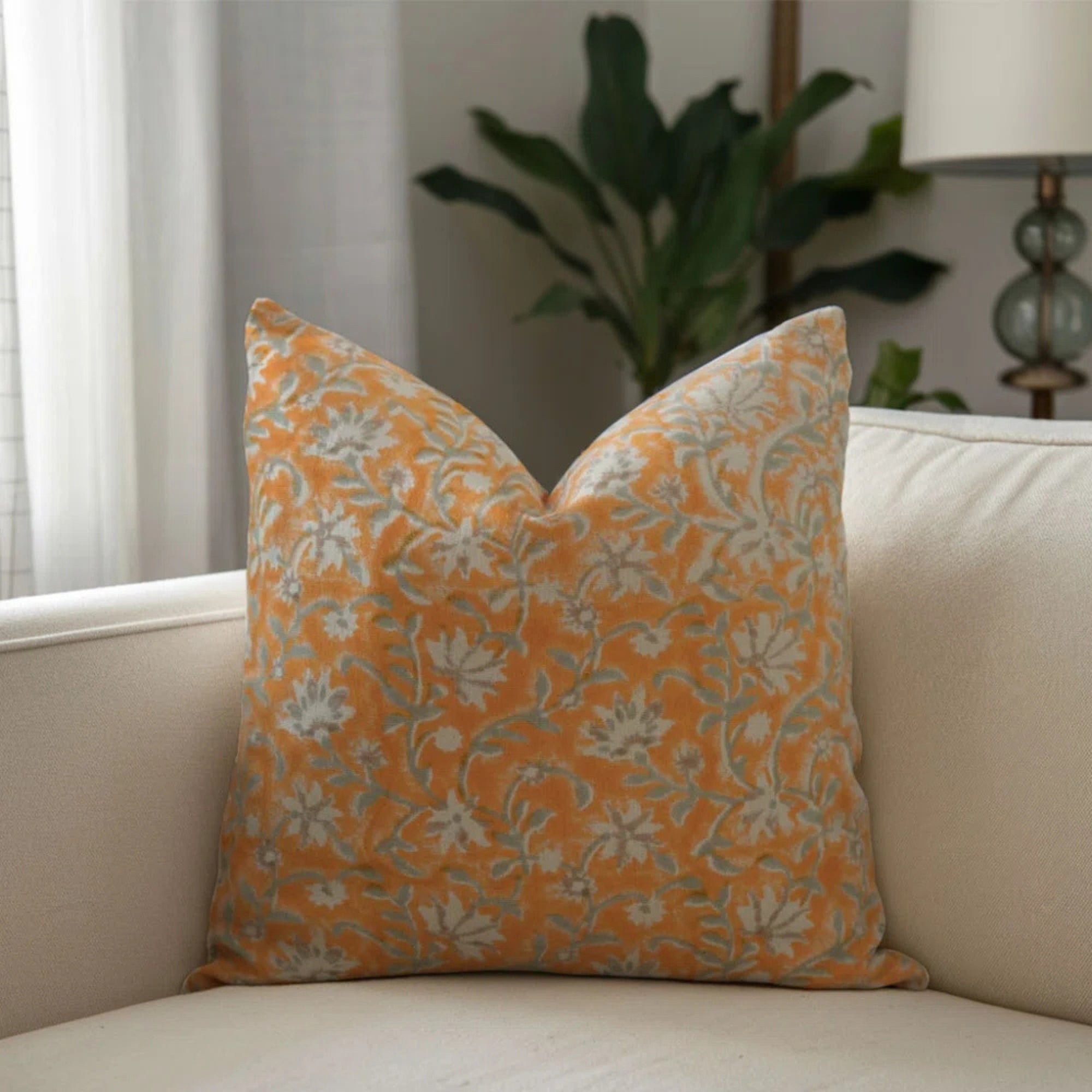 Block print Pillow cover for sofa, couch or bed- Duck Canvas- ARADHANA - Fabdivine