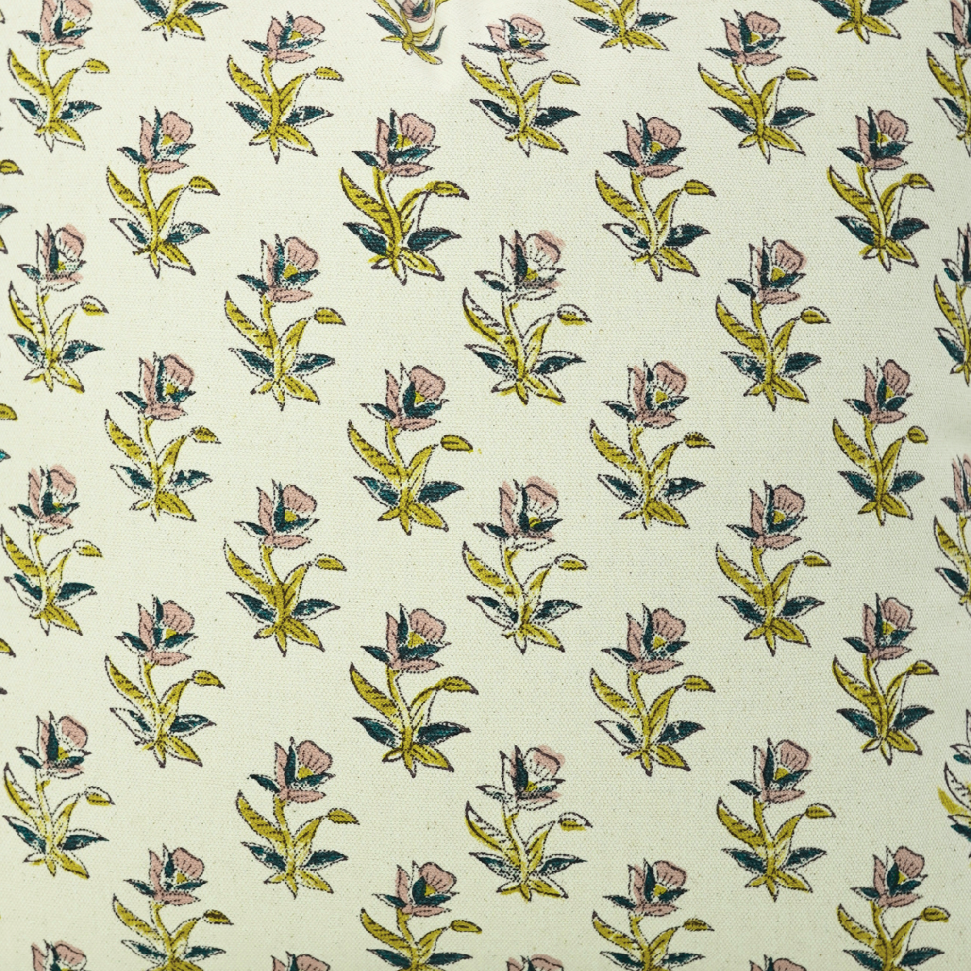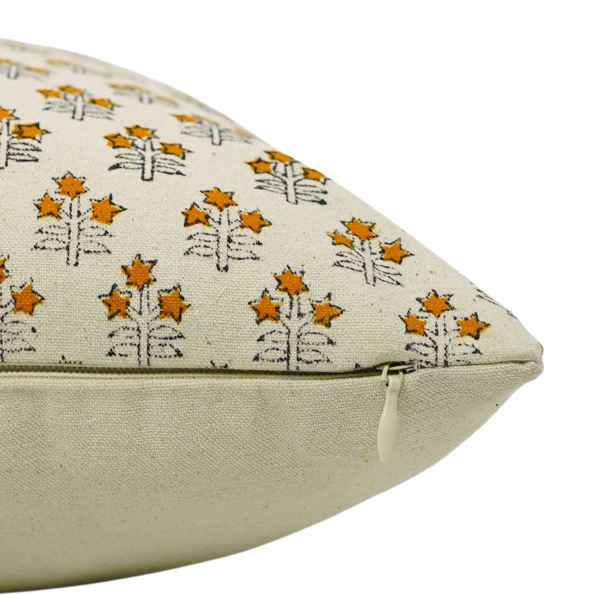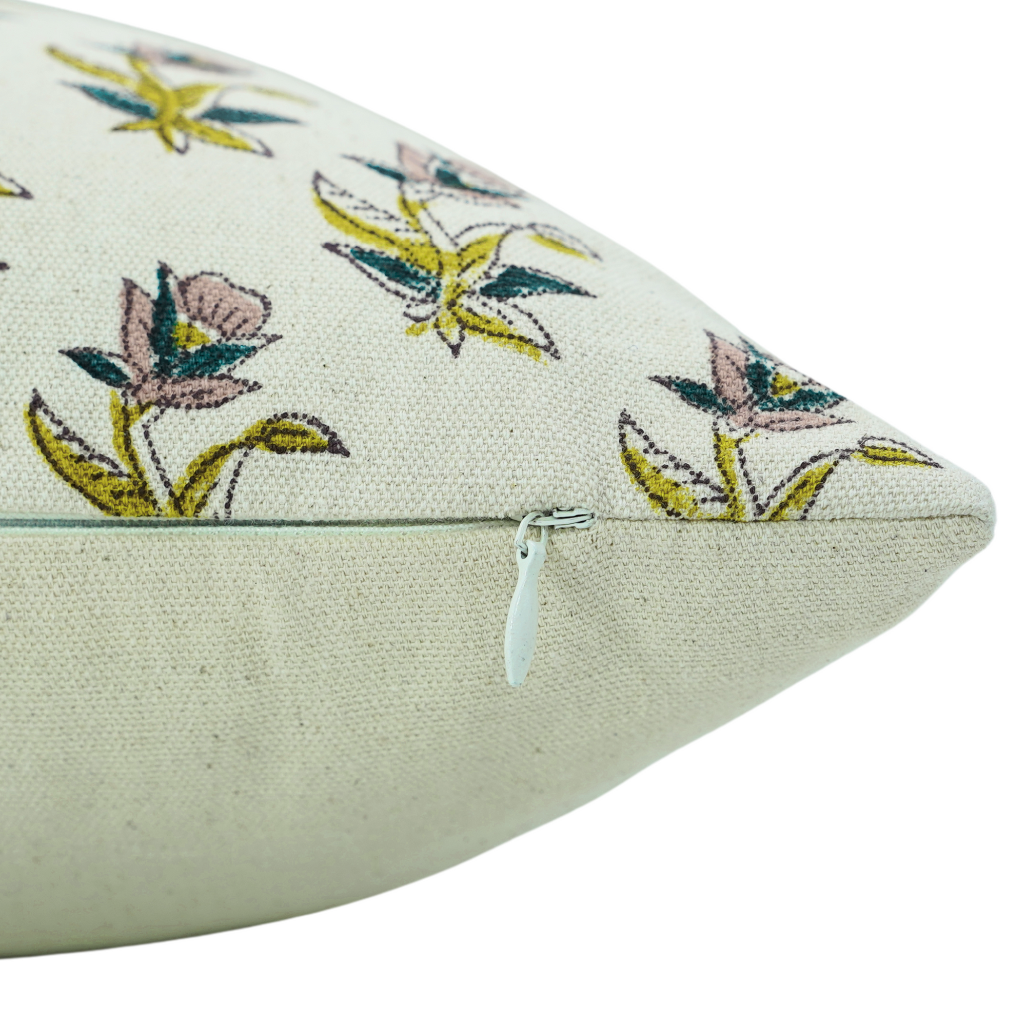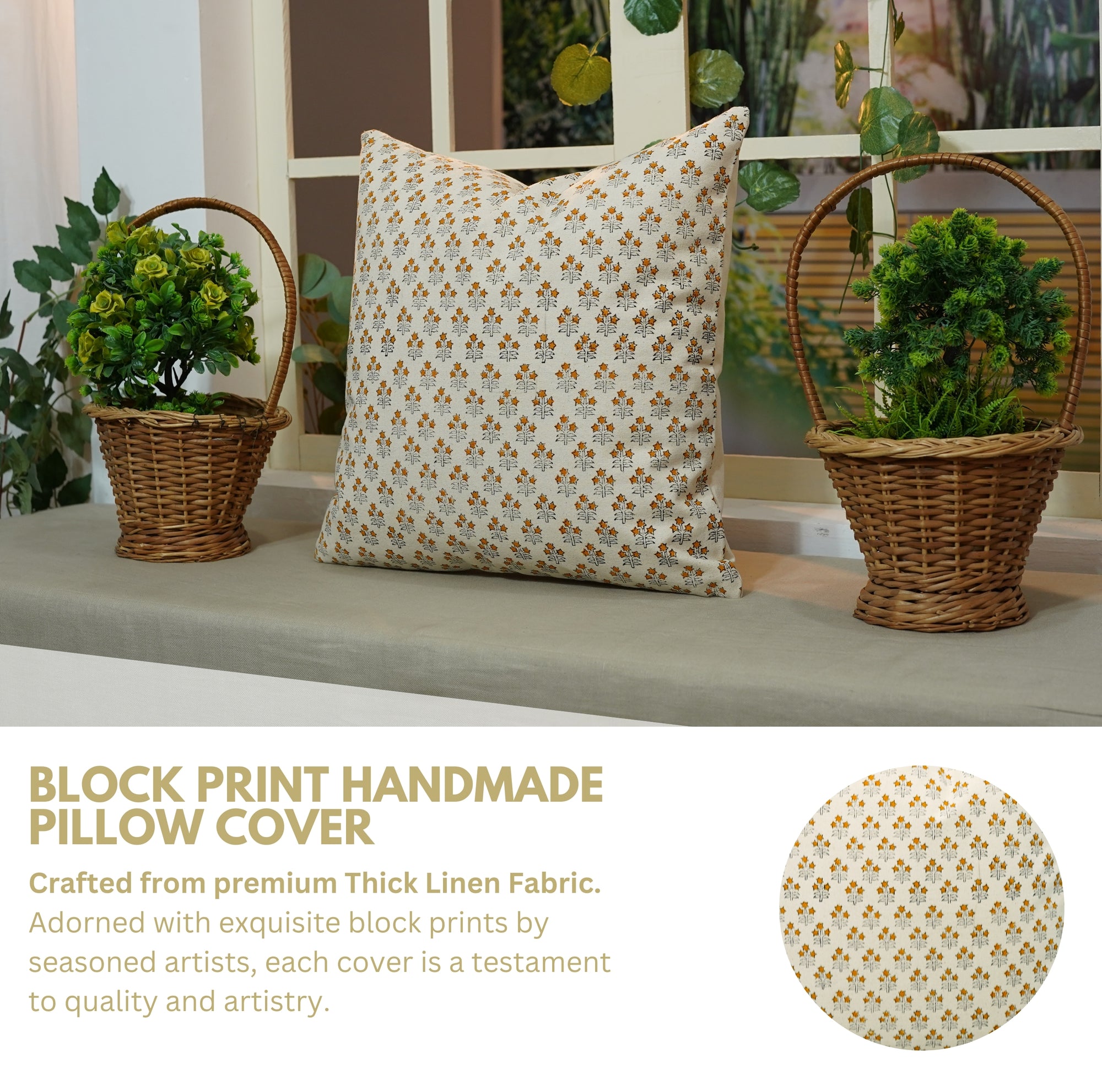 Block Printed Duck Canvas Pillow Cover - Dafodil By Fabdivine