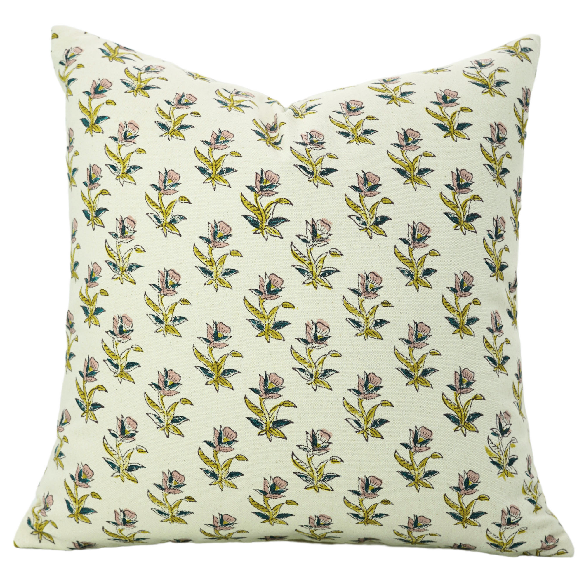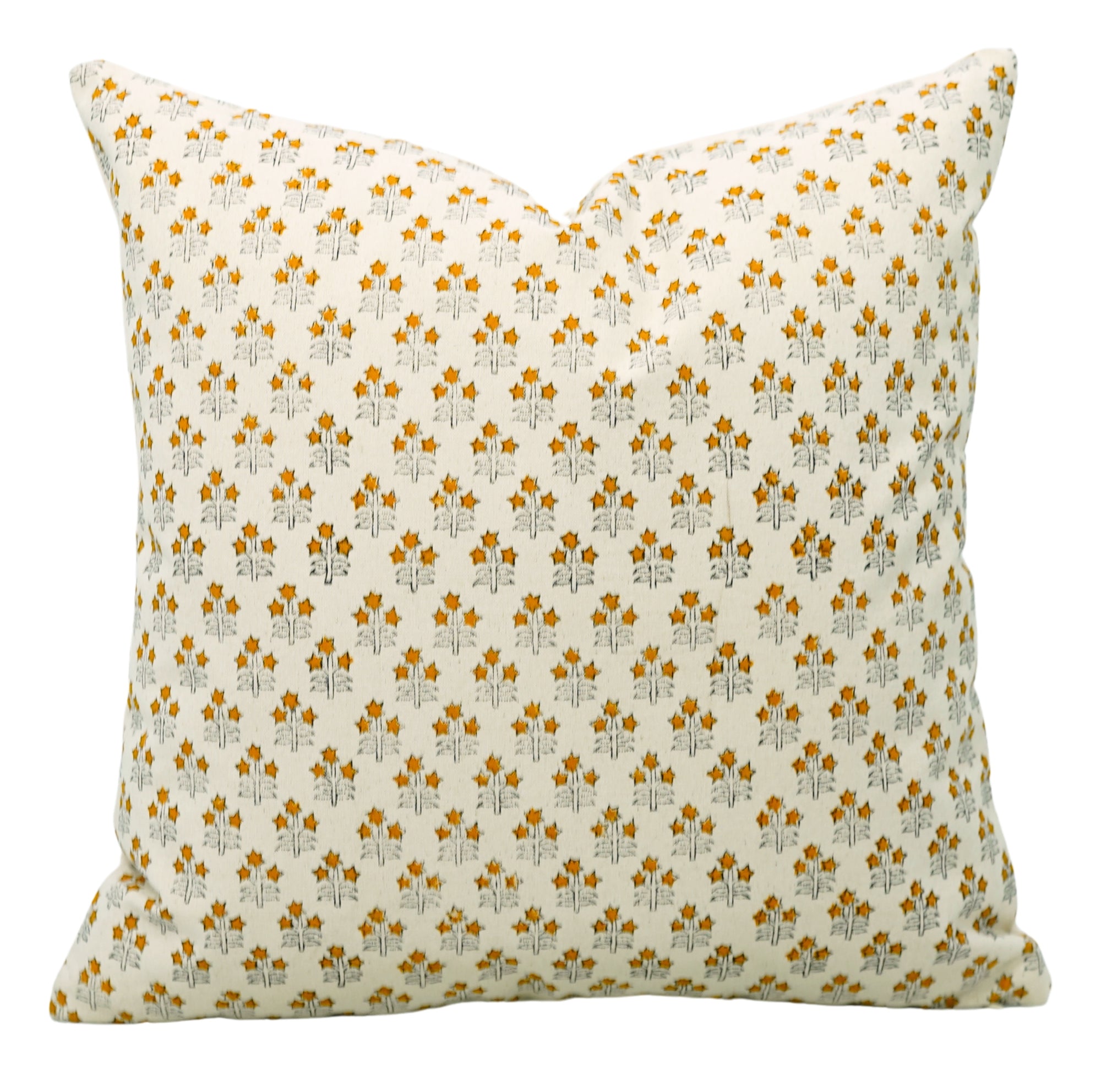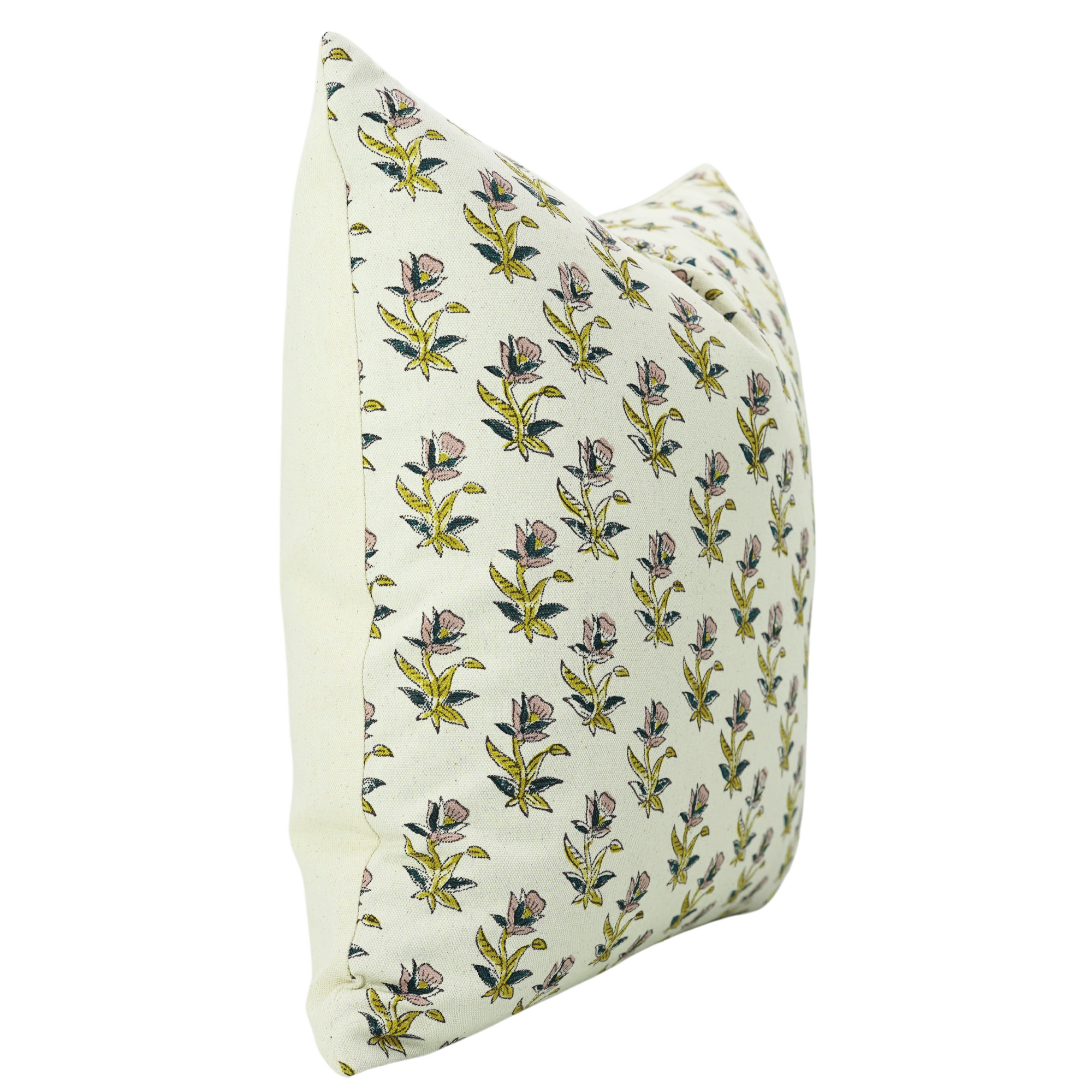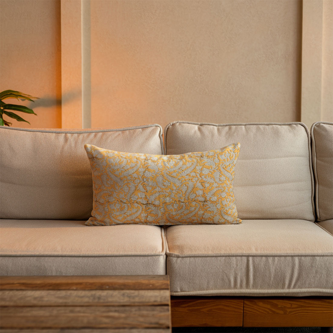 Block Printed Duck Canvas Pillow Cover - Dafodil By Fabdivine