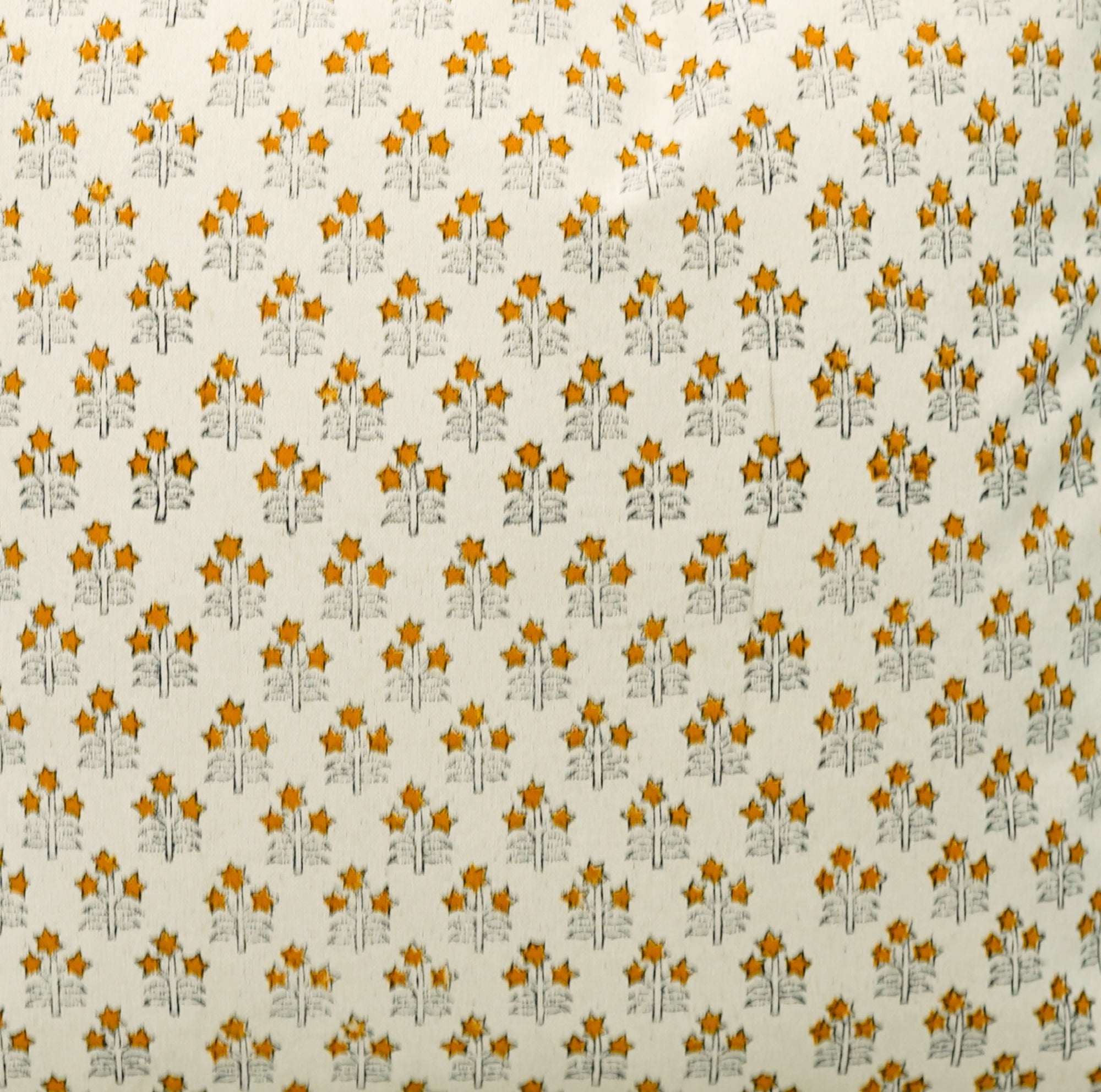 Handmade print thick cotton white fabric ABHISHEK - Fabdivine
