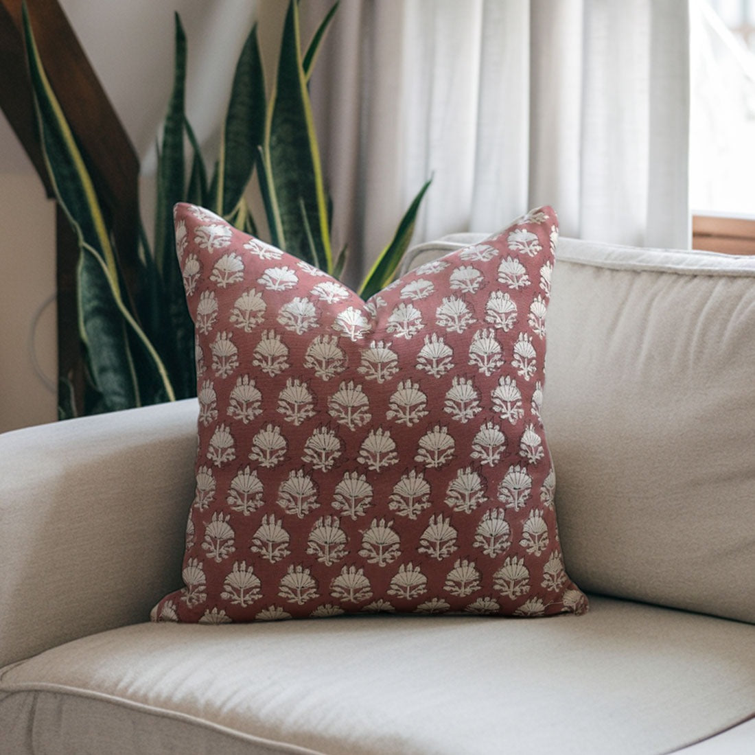 Block print Thick Cotton throw pillow cover- MOGRA - Fabdivine