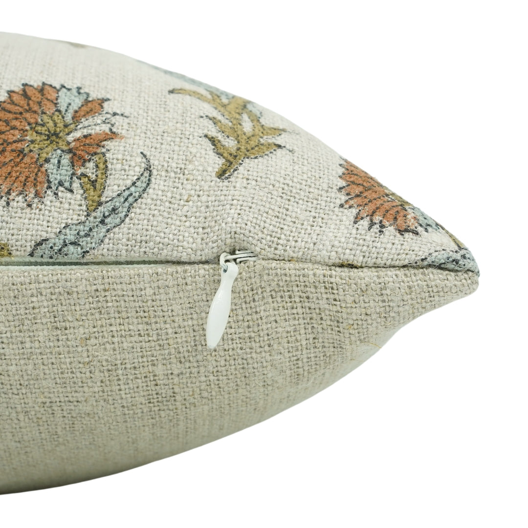 Pure Linen block print designer boho pillow/cushion cover - MAHALAKSHMI - Fabdivine