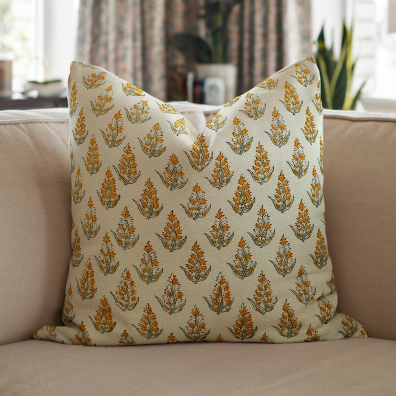 Block print Pillow cover for sofa, couch or bed- duck canvas cotton- KOHINOOR - Fabdivine