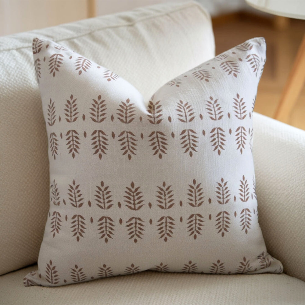 Thick Cotton White block print designer boho pillow/cushion cover - MUSHROOM - Fabdivine