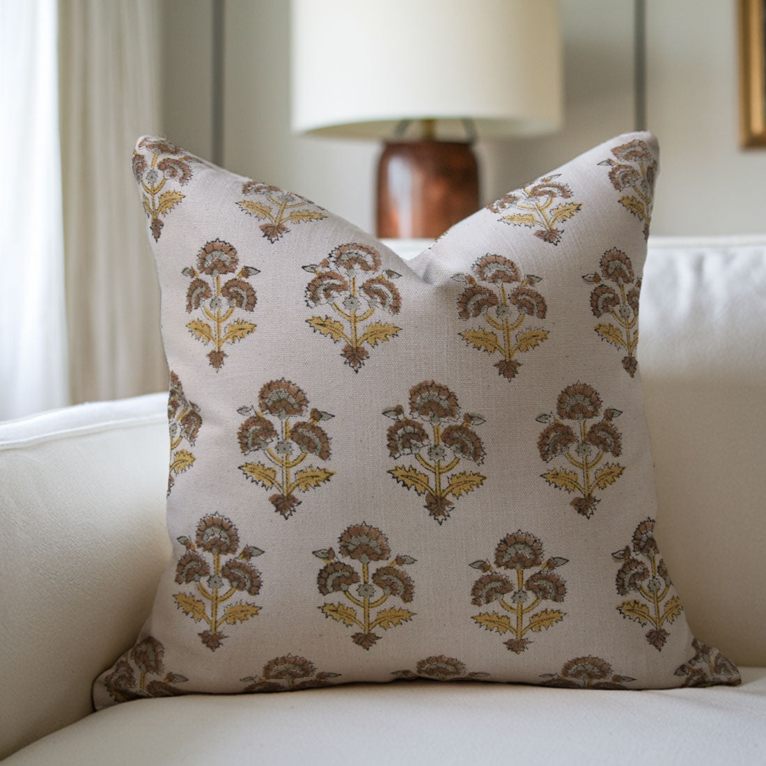 TULSI BUTI Block Print Pillow Cover for Sofa, Couch, or Bed - Fabdivine