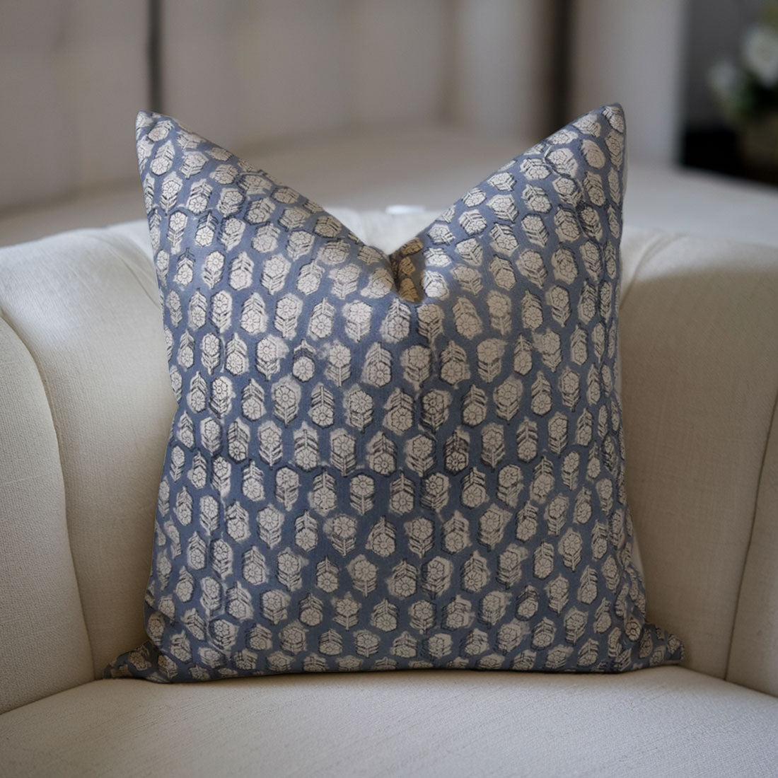 JASMINE Block Print Cotton Pillow Cover - Fabdivine