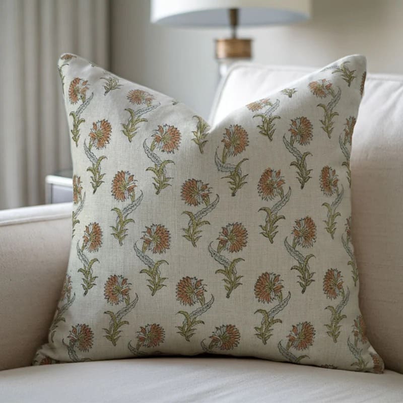 Throw Pillow Cover Designer Collection of Hand Block Print Thick Linen- SUMMER - Fabdivine