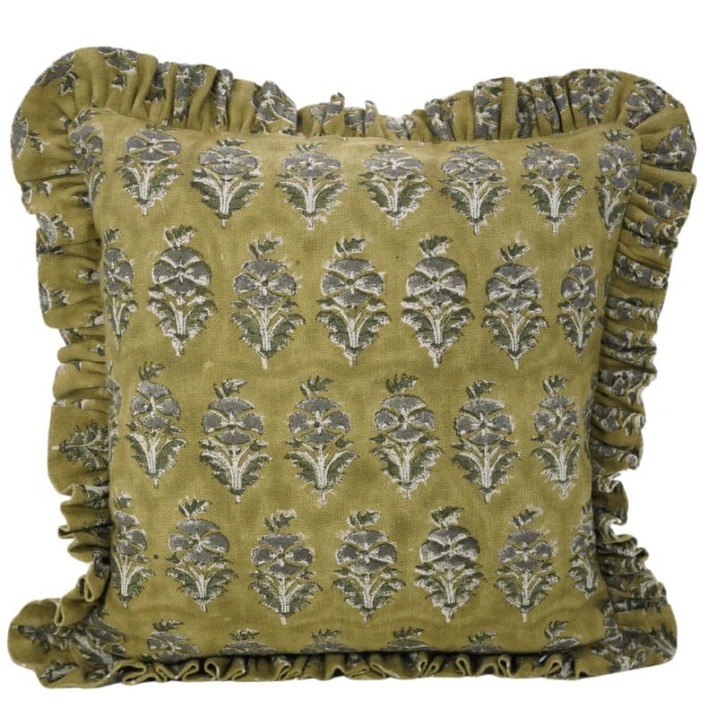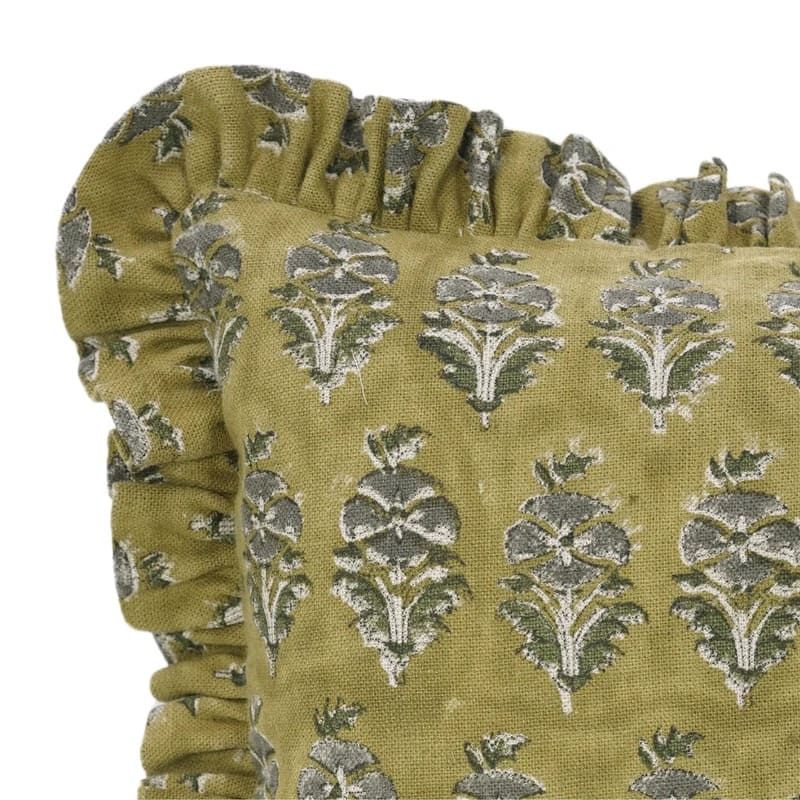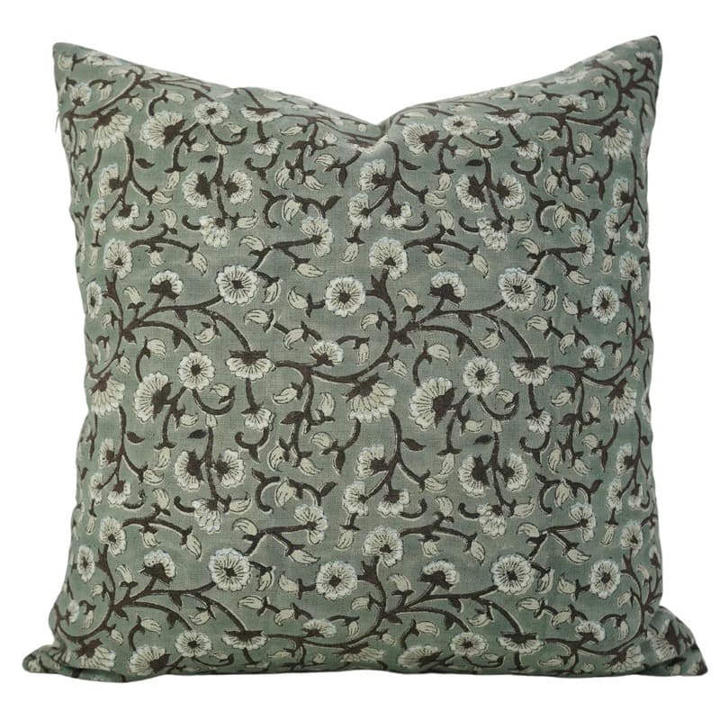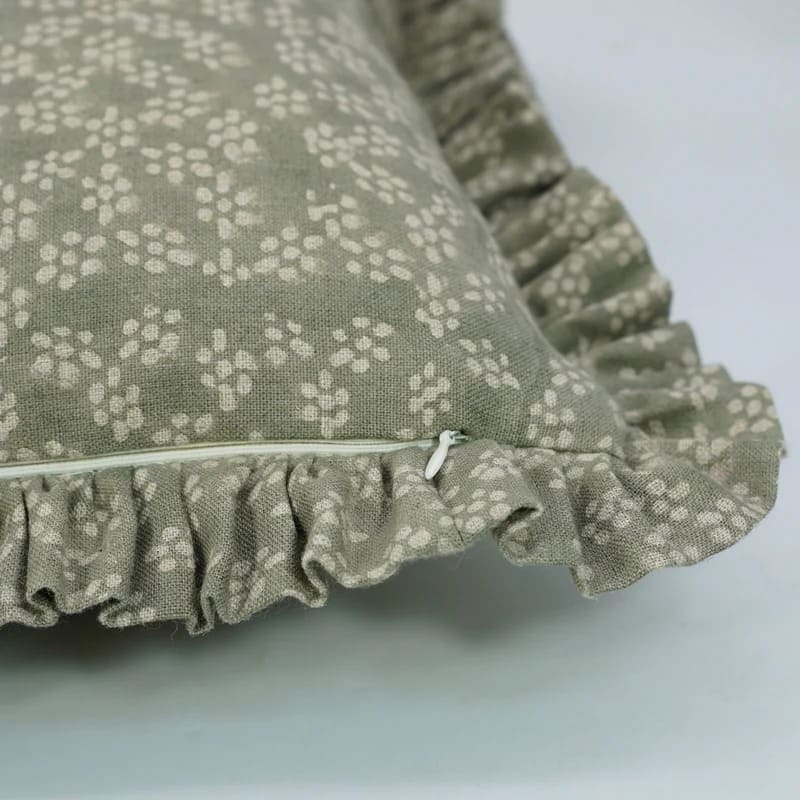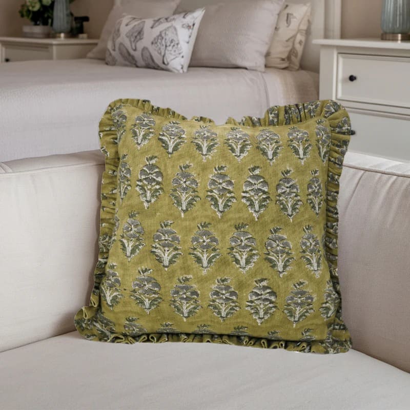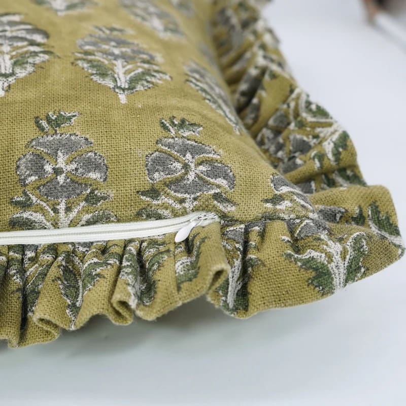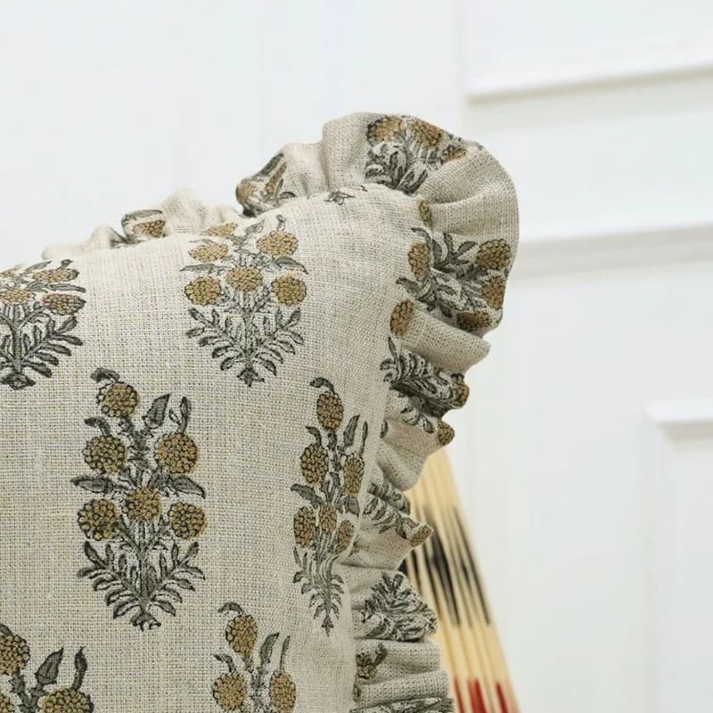Block Printed Thick Linen Throw Pillow Cover - Bael Patra By Fabdivine