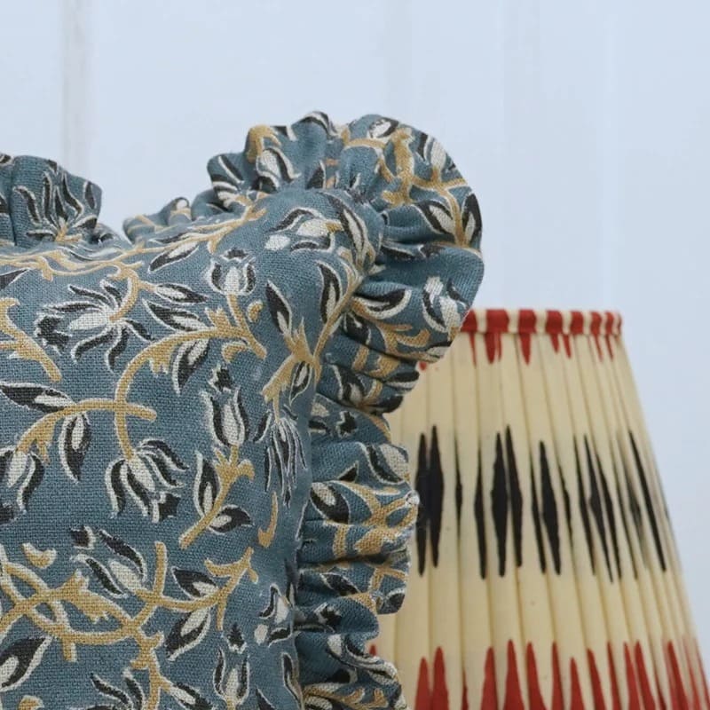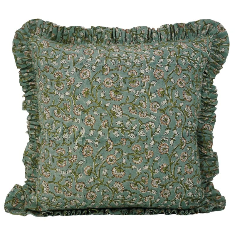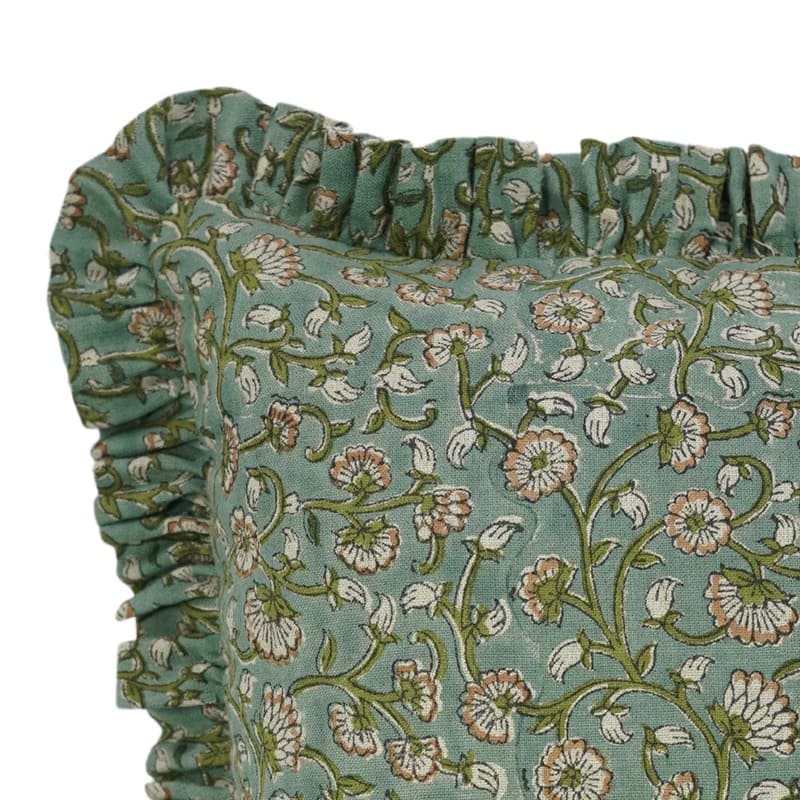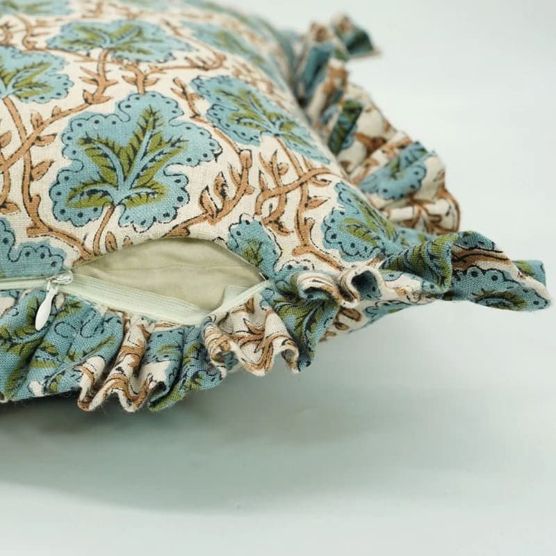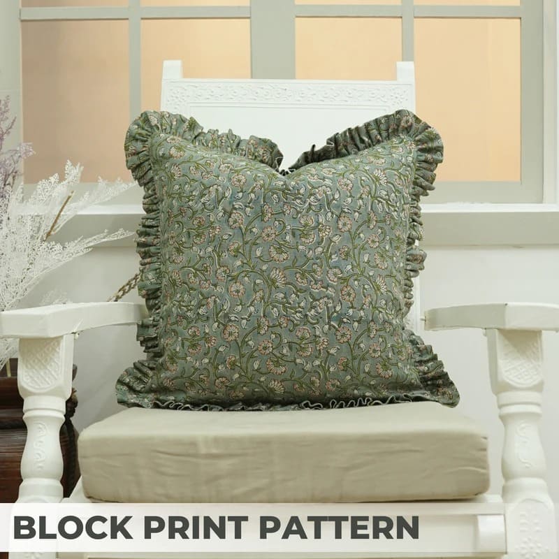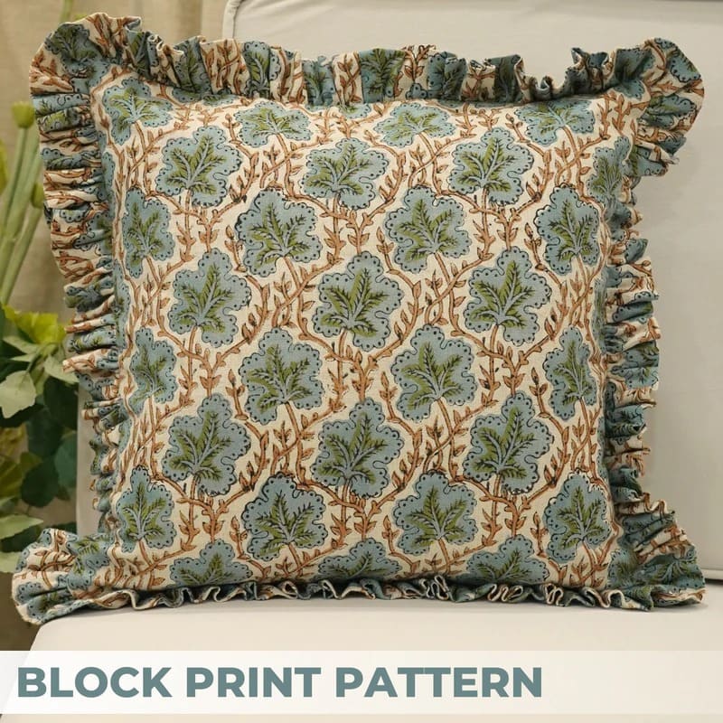 Block printed pillow cover with traditional Indian design