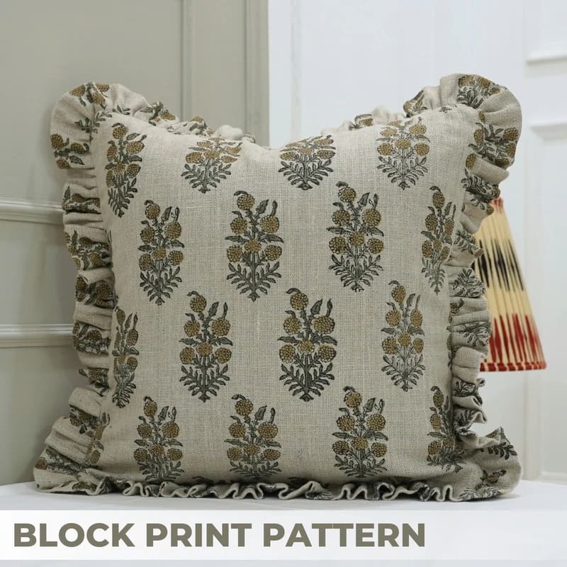 Block print Pillow cover for sofa, couch or bed- Cotton Linen- JHEEL - Fabdivine