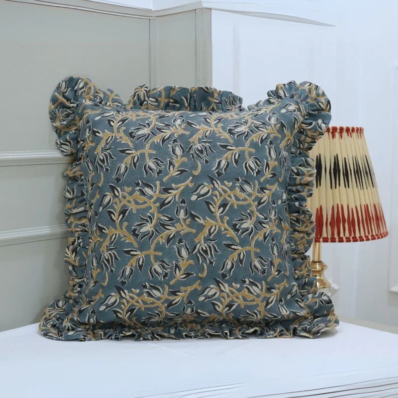 Block Printed Duck Canvas Pillow Cover - Alia