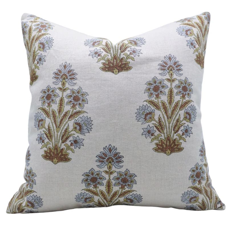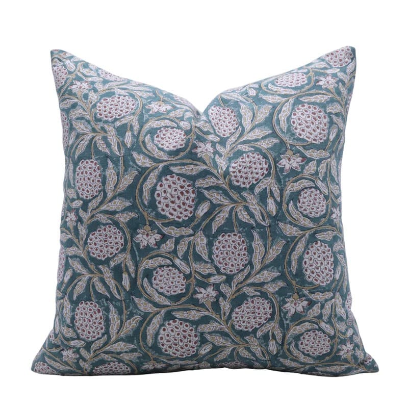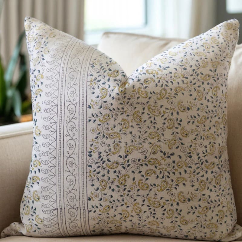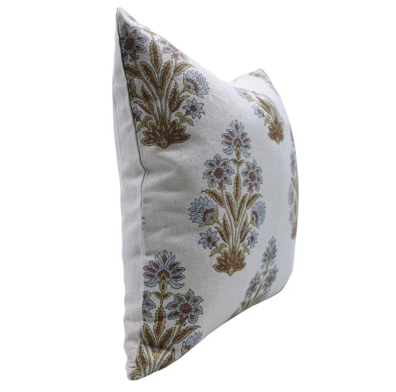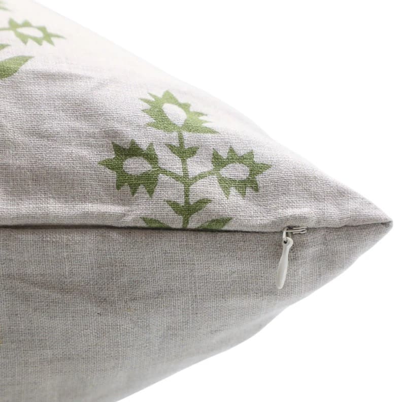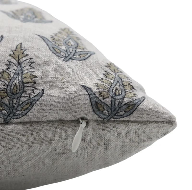 Hand Block Soft Linen Pillow Cover with Invisible Zipper