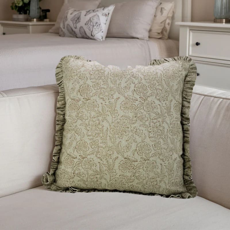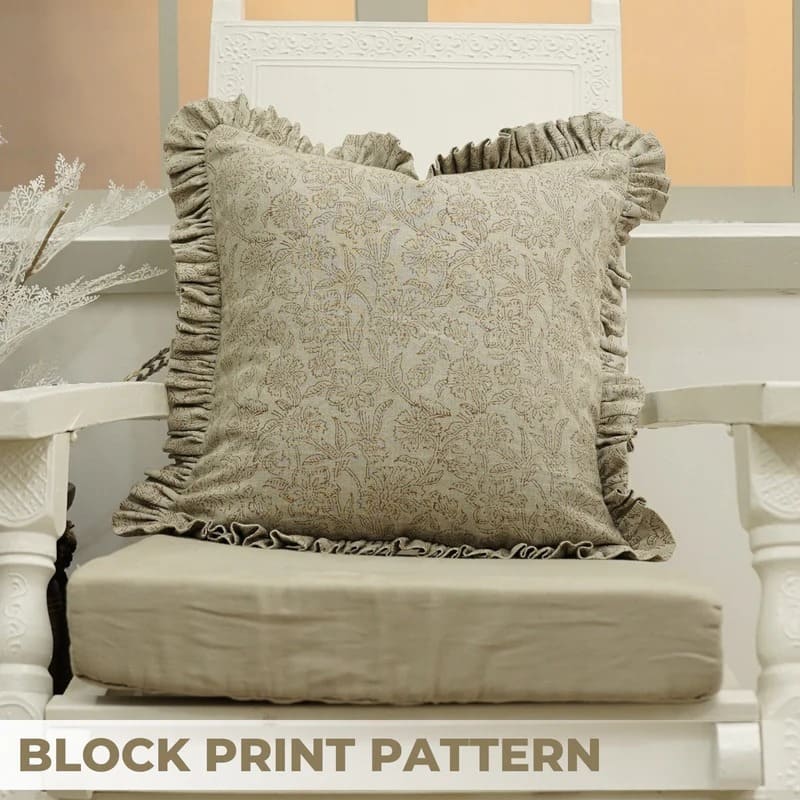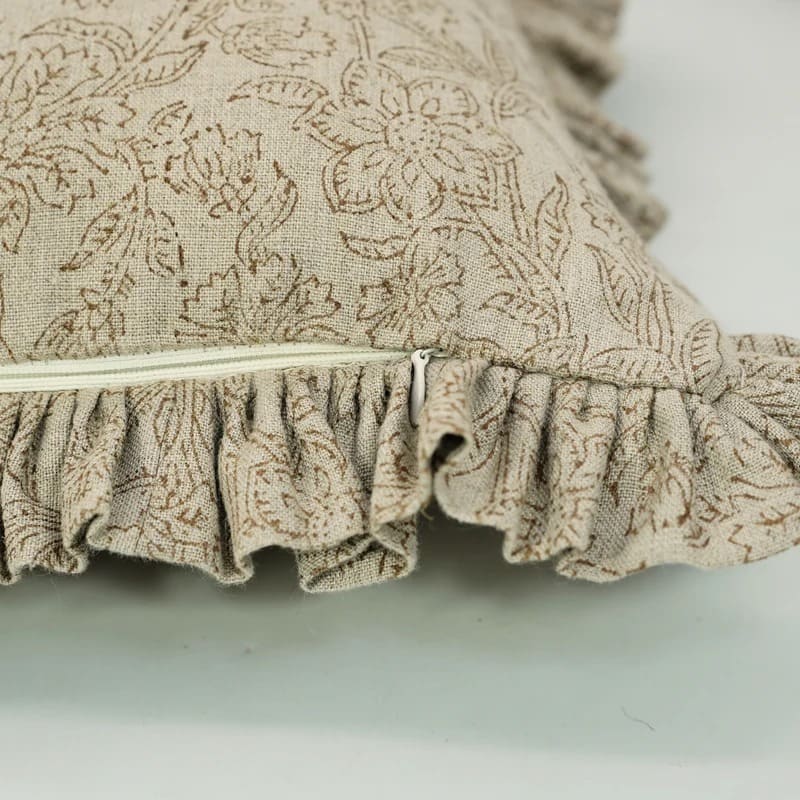 Hand Block Soft Linen Pillow Cover with Invisible Zipper