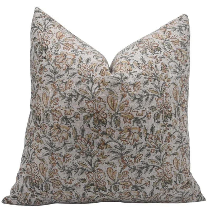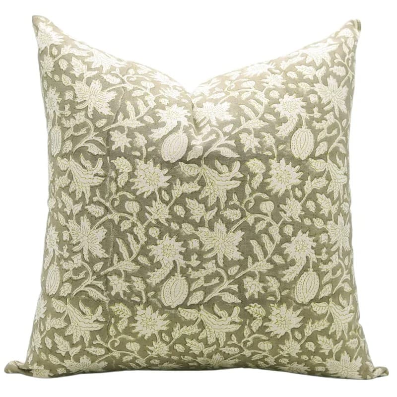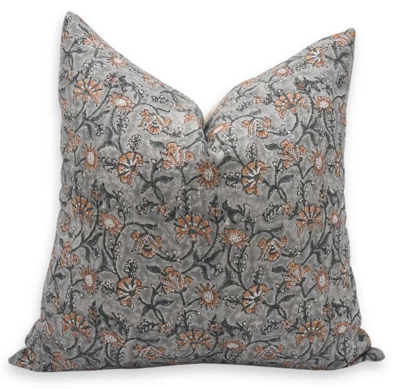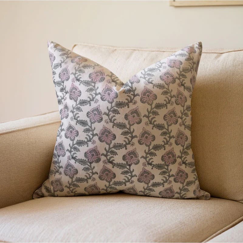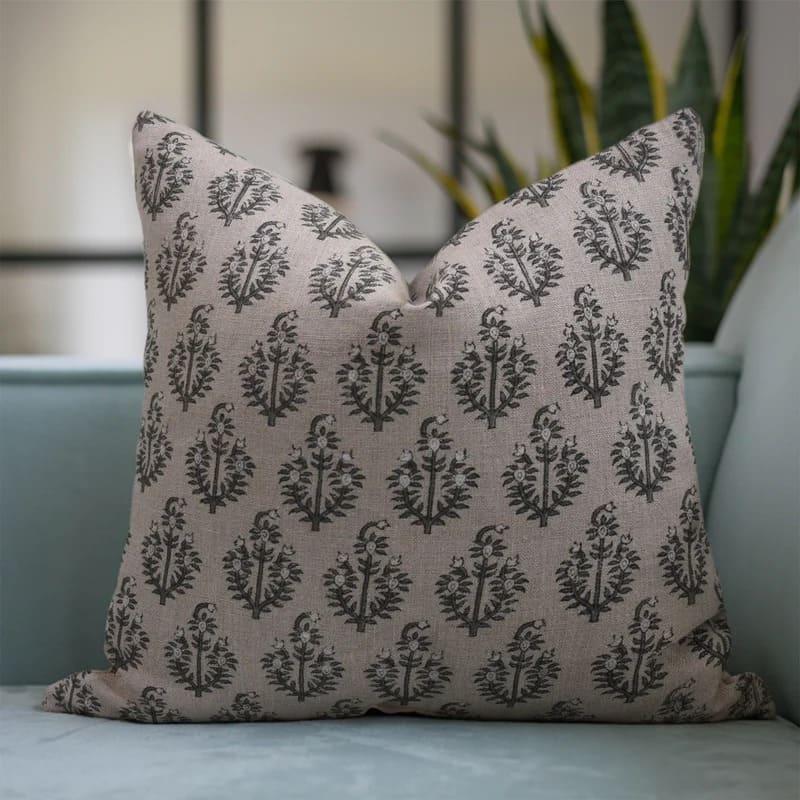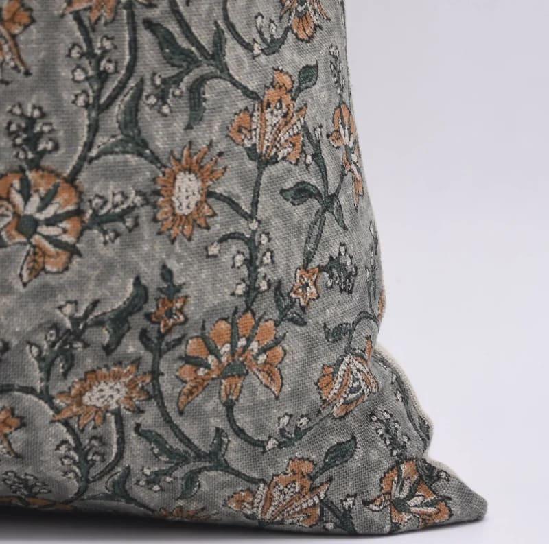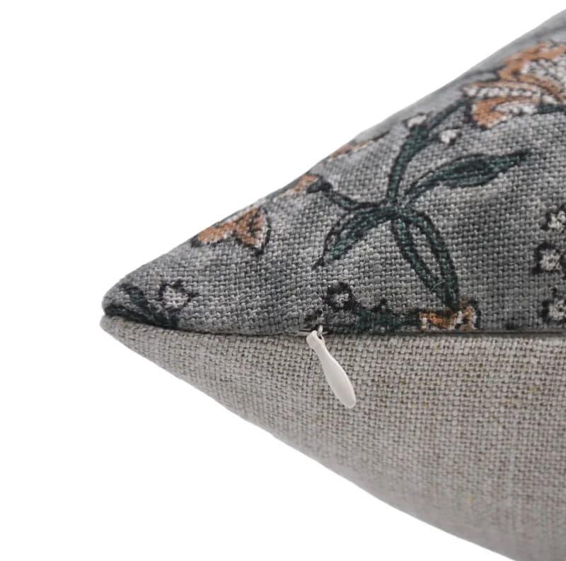 Hand Block Soft Linen Pillow Cover with Invisible Zipper