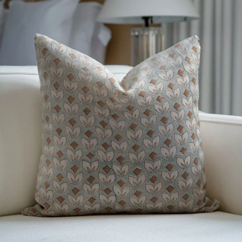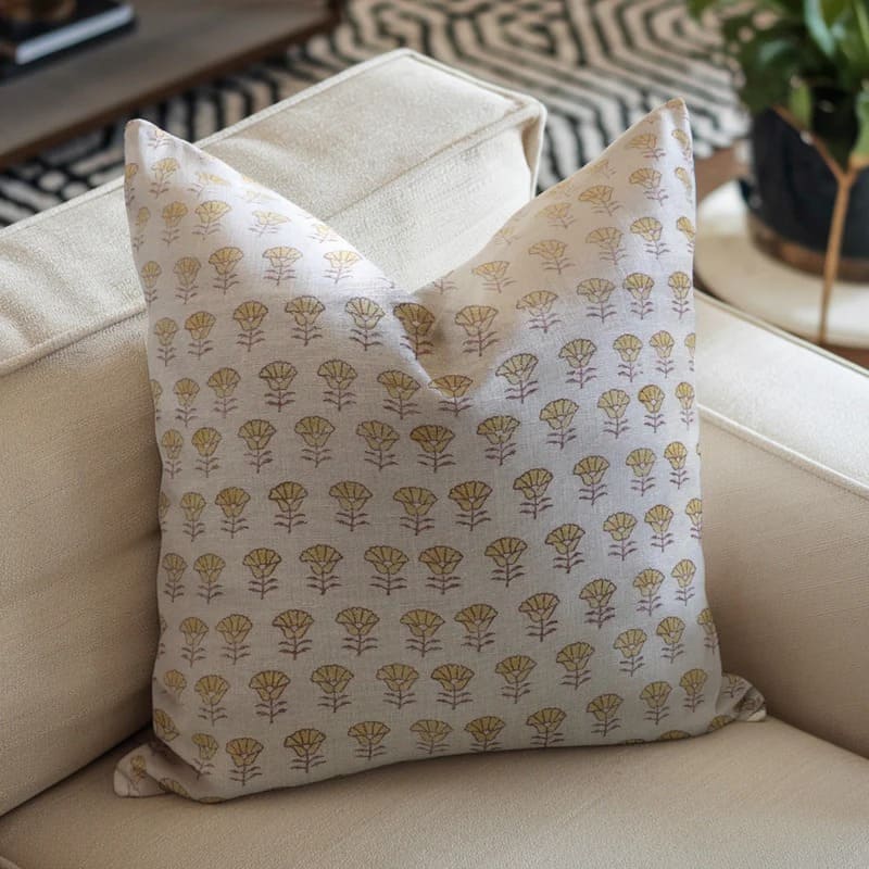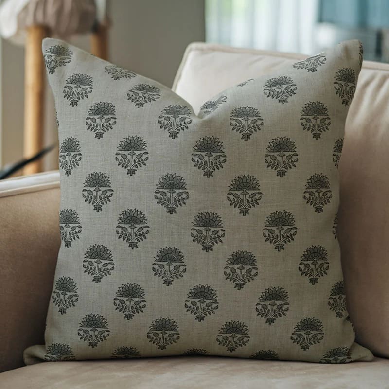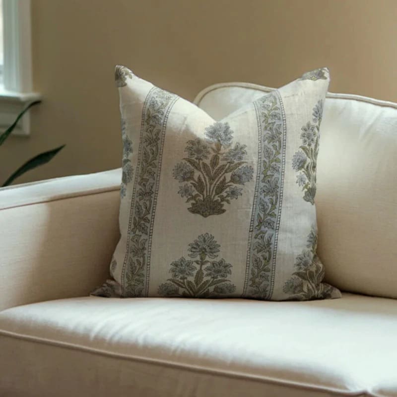 Block print Pillow cover for sofa, couch or bed- Pure Linen- KUDRAT - Fabdivine