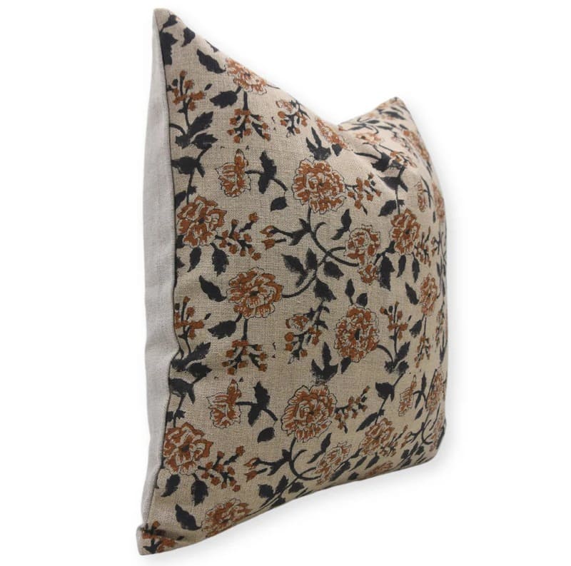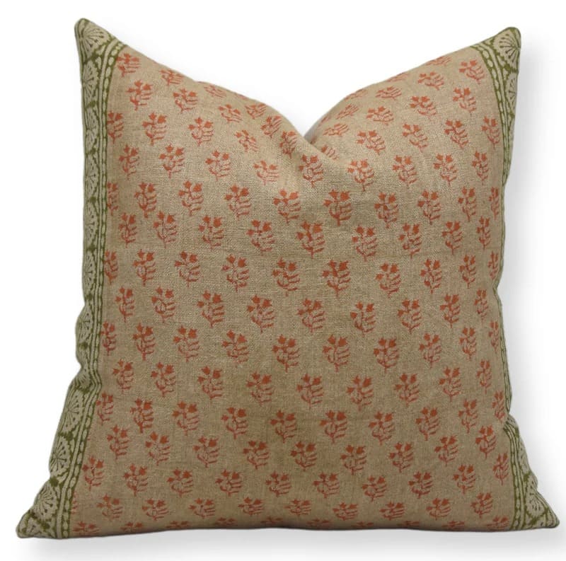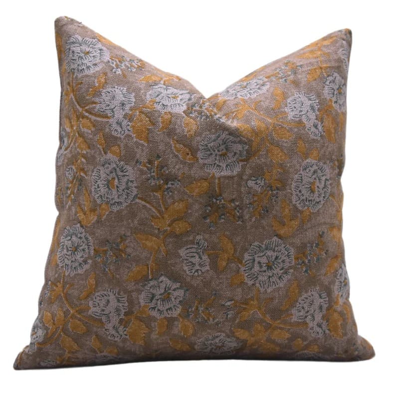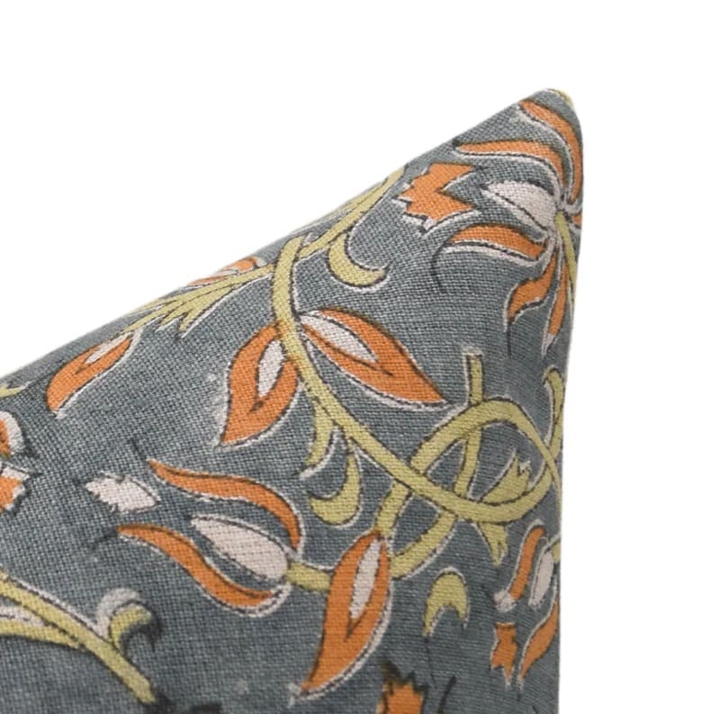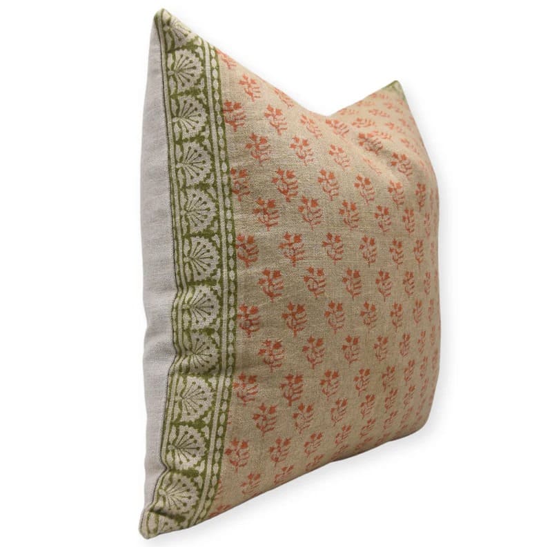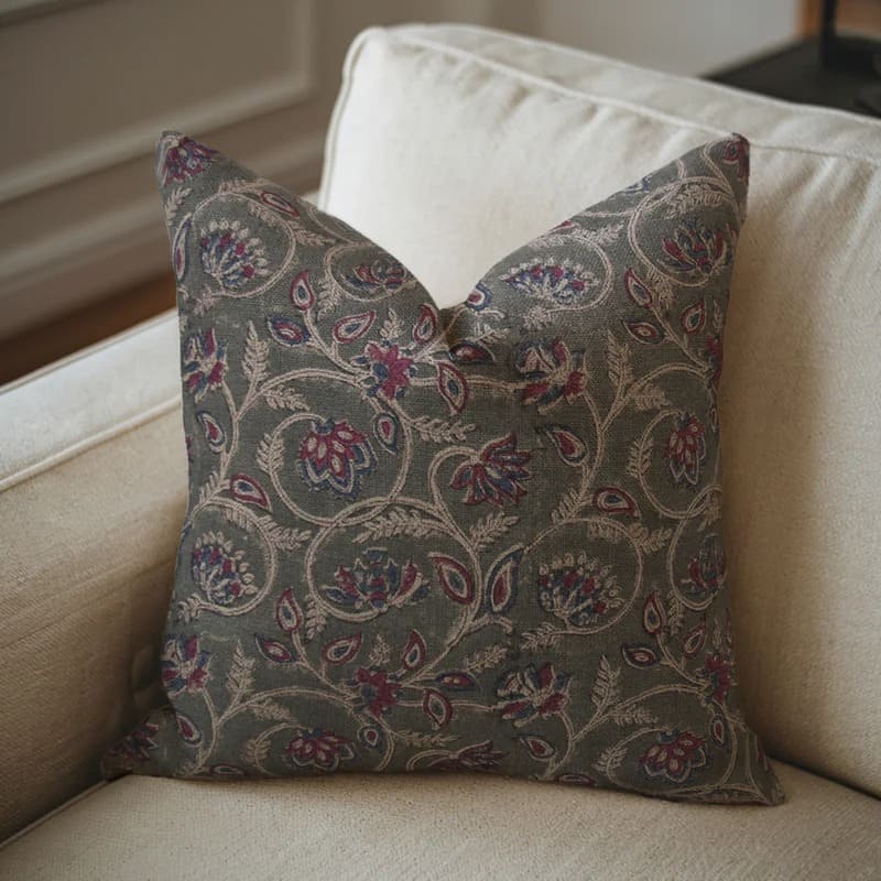 Heavy Linen Pillow Cover in Block Print - MOR MUKUT - Fabdivine