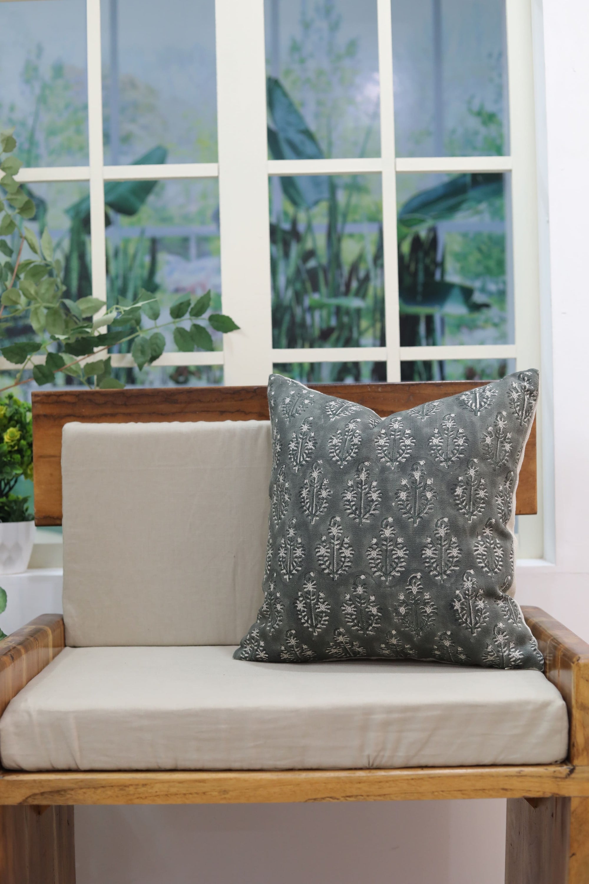 Block print Pillow cover for sofa, couch or bed- Thick Linen- KUNDANVAN - Fabdivine