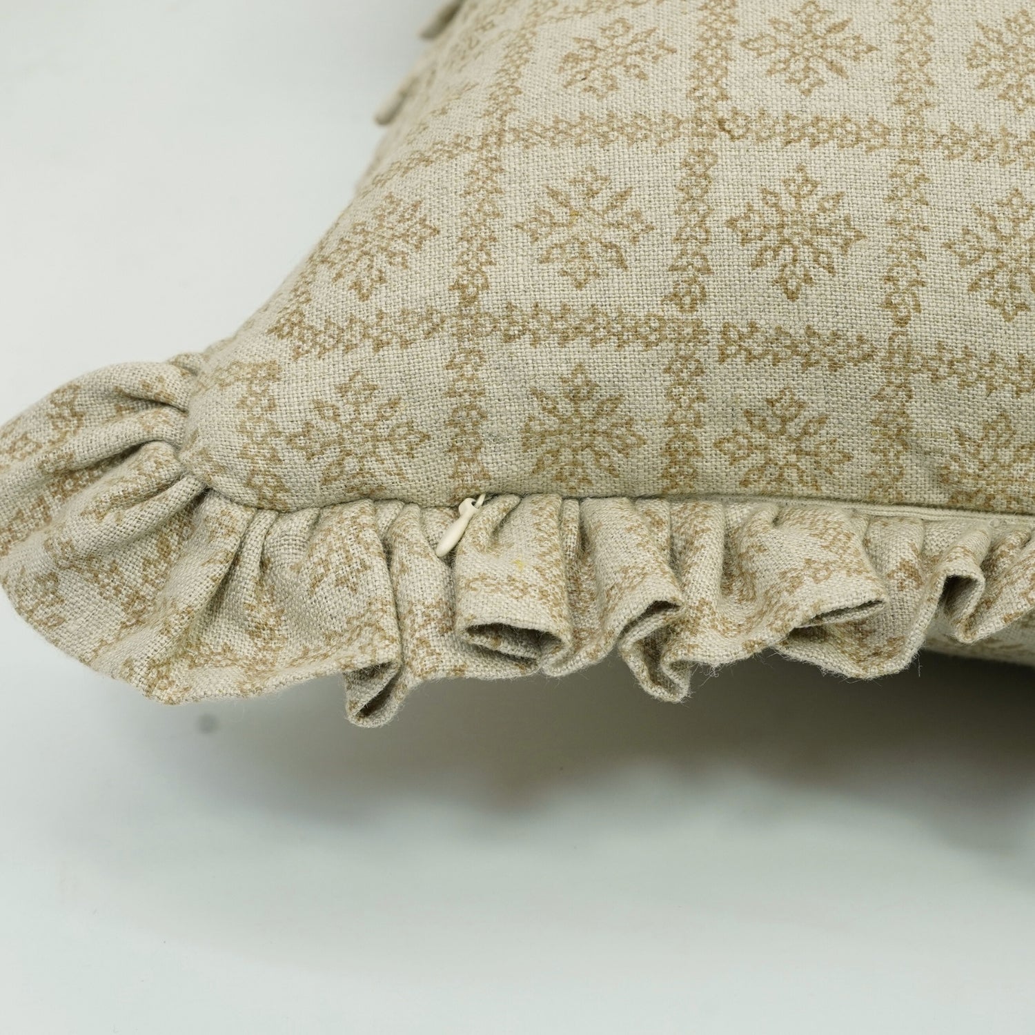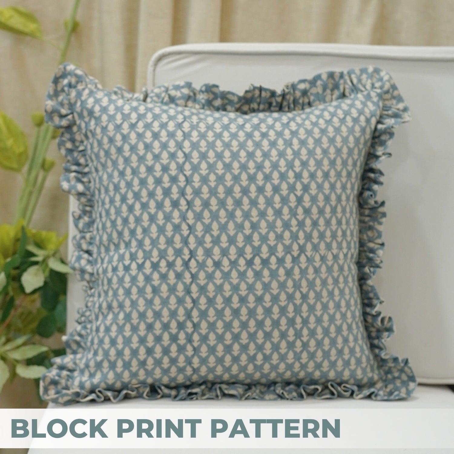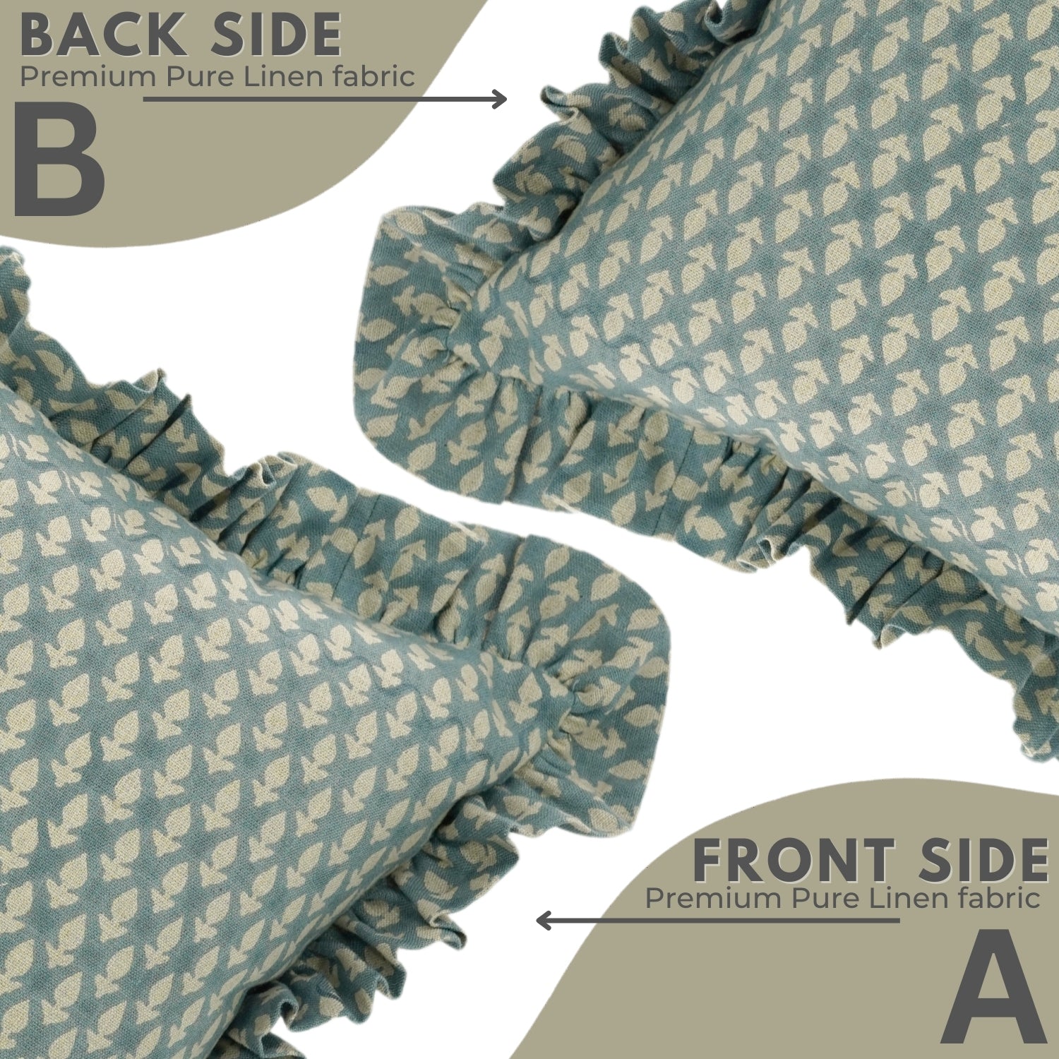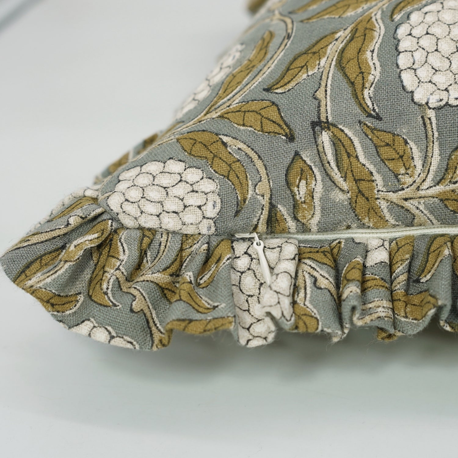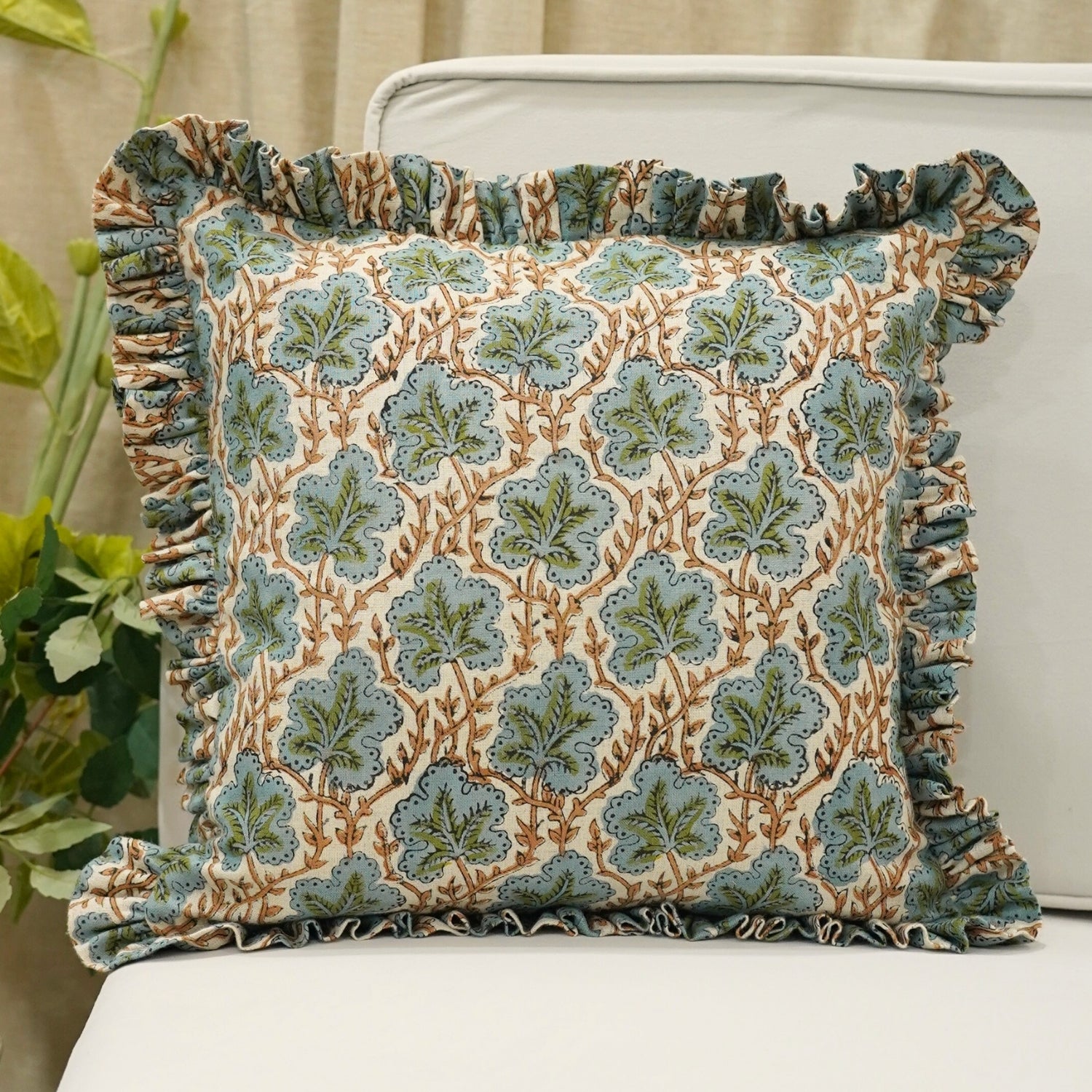 Block Printed Thick Linen Frill Pillow Cover - Tulsi Buti By Fabdivine
