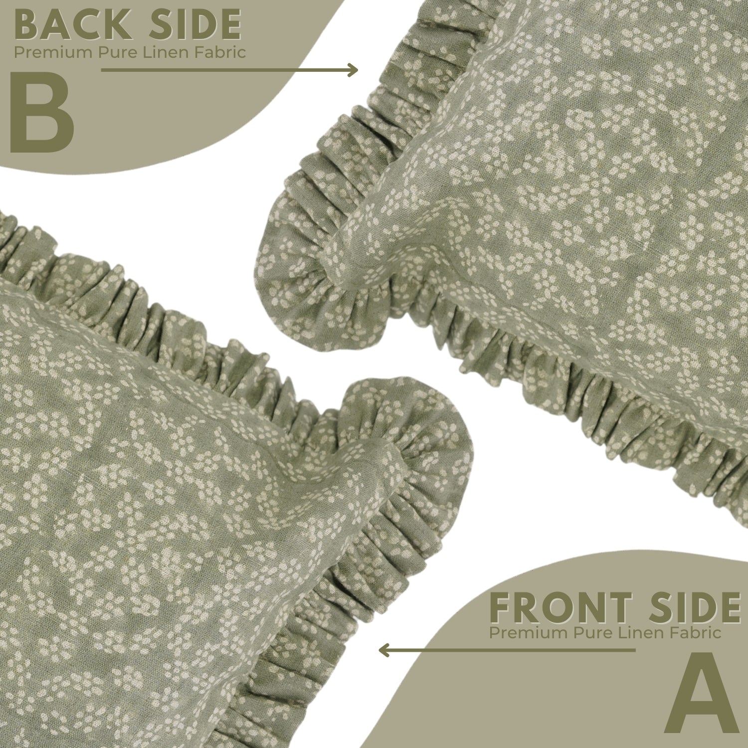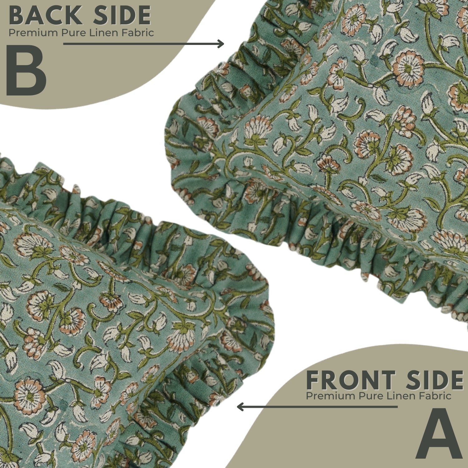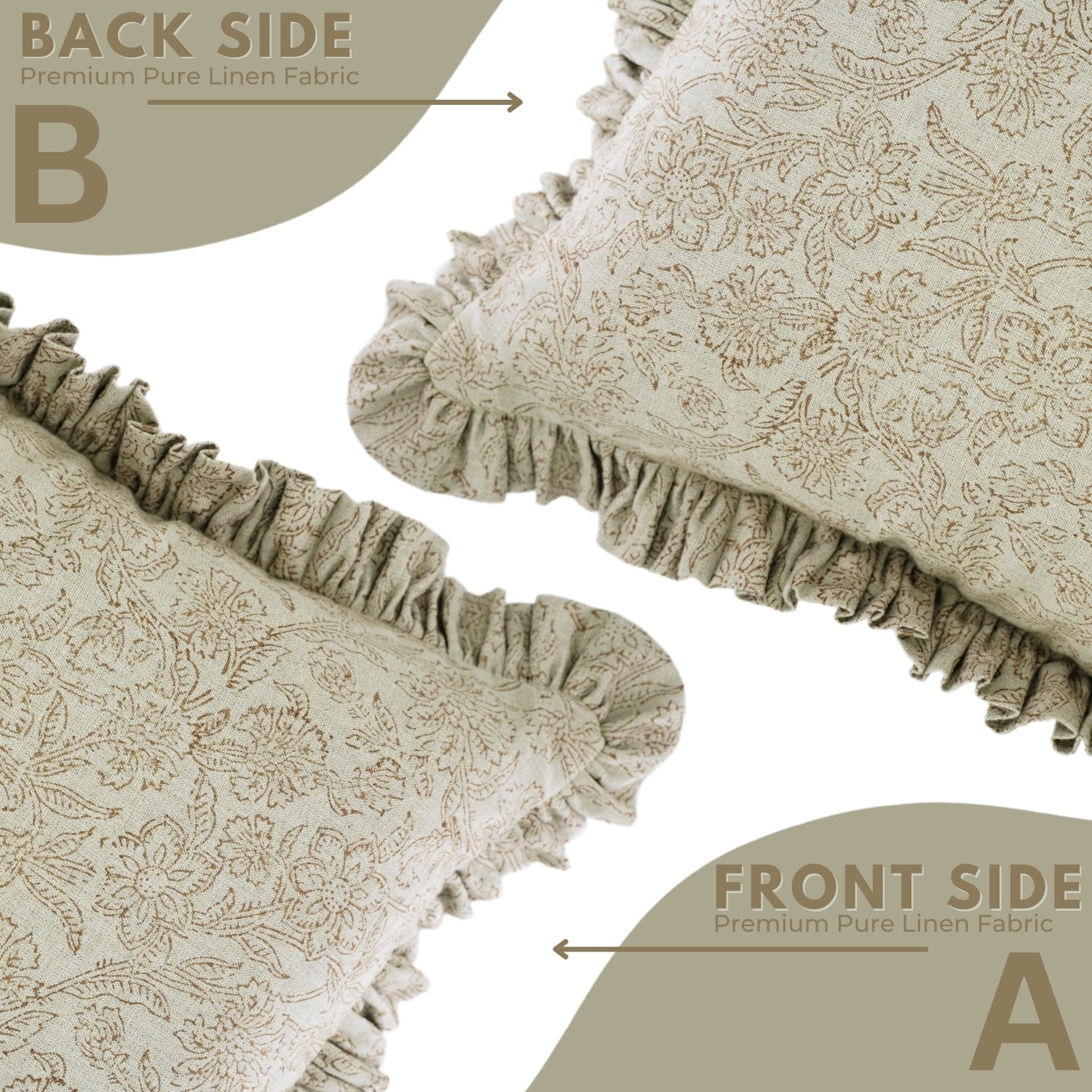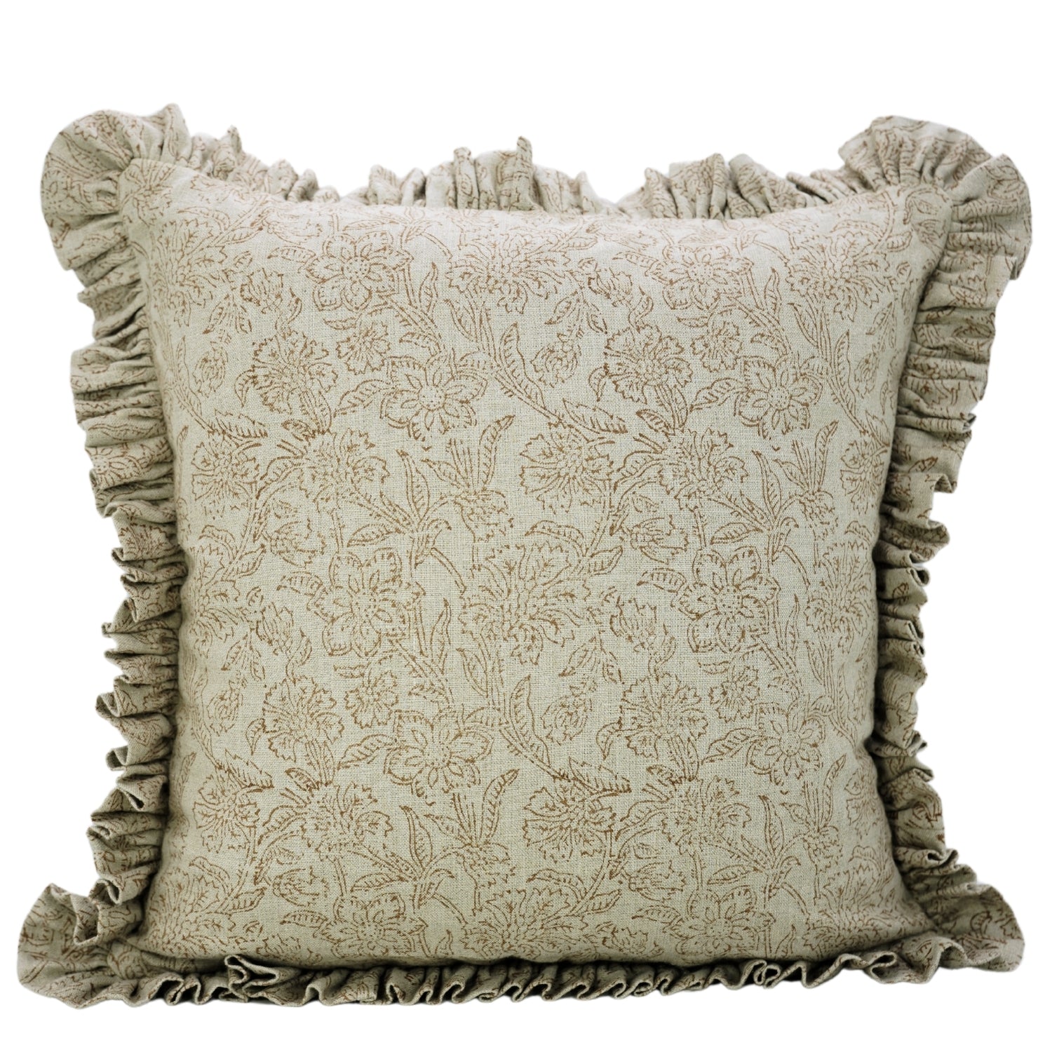 Block Printed Thick Linen Frill Pillow Cover - Tulsi Buti By Fabdivine