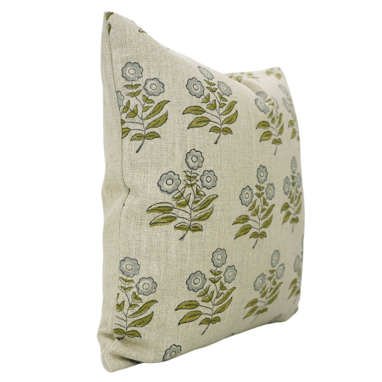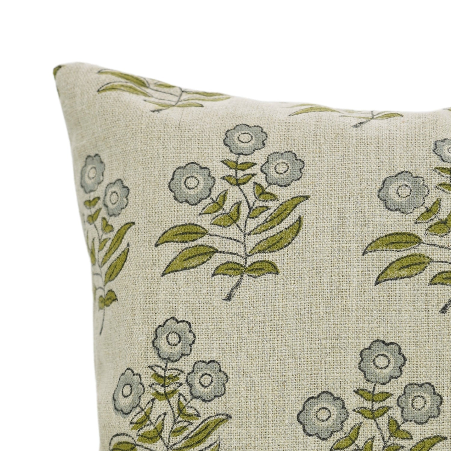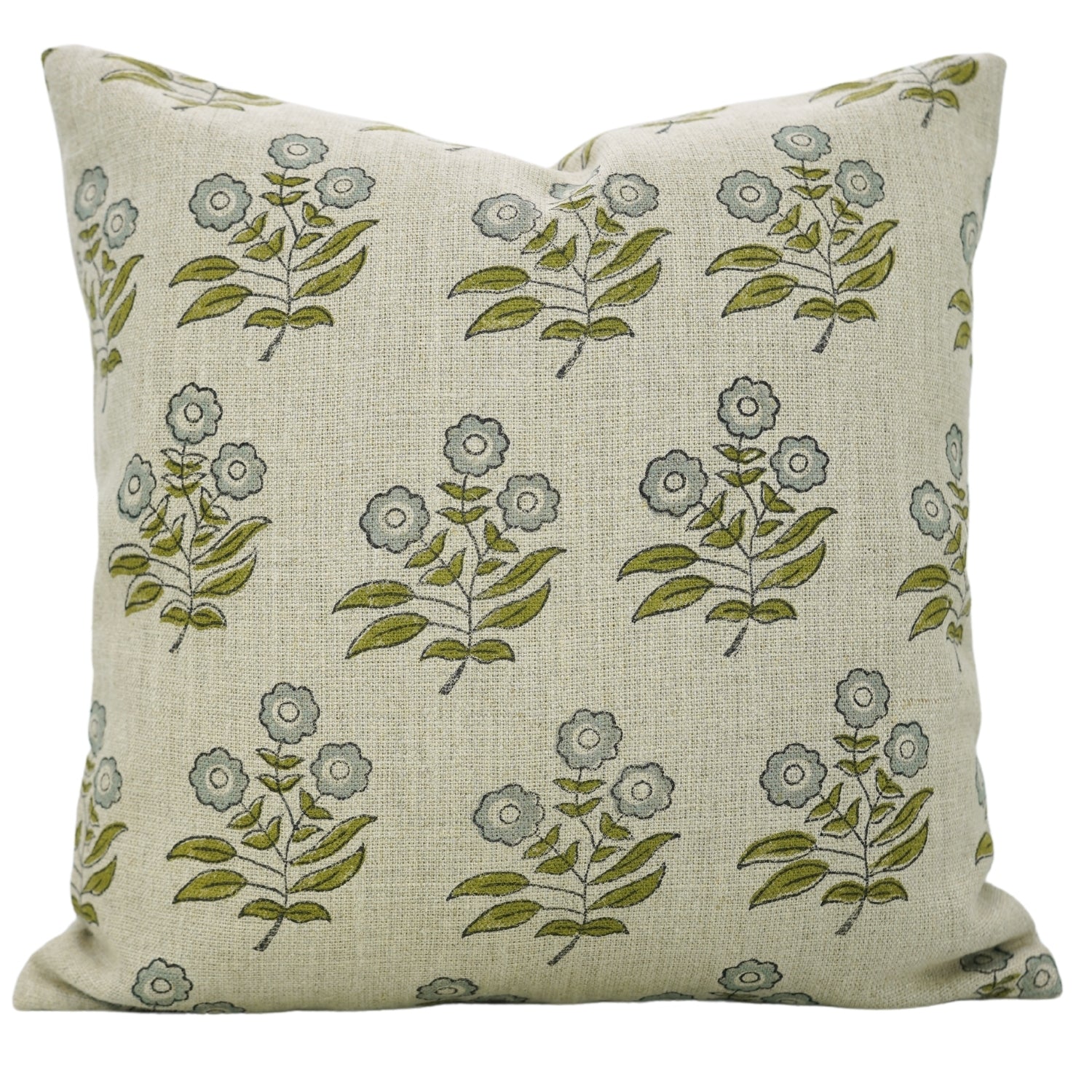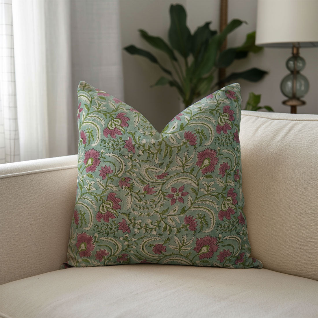 Hand Block Printed Home Decor Floral Pillow Case – Pure Linen Gudhal Green Design By Fabdivine.