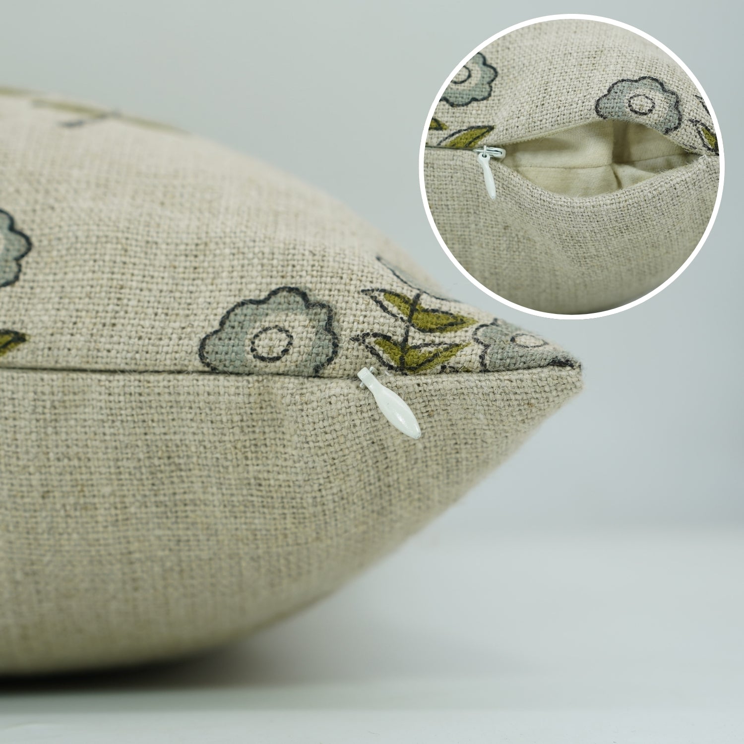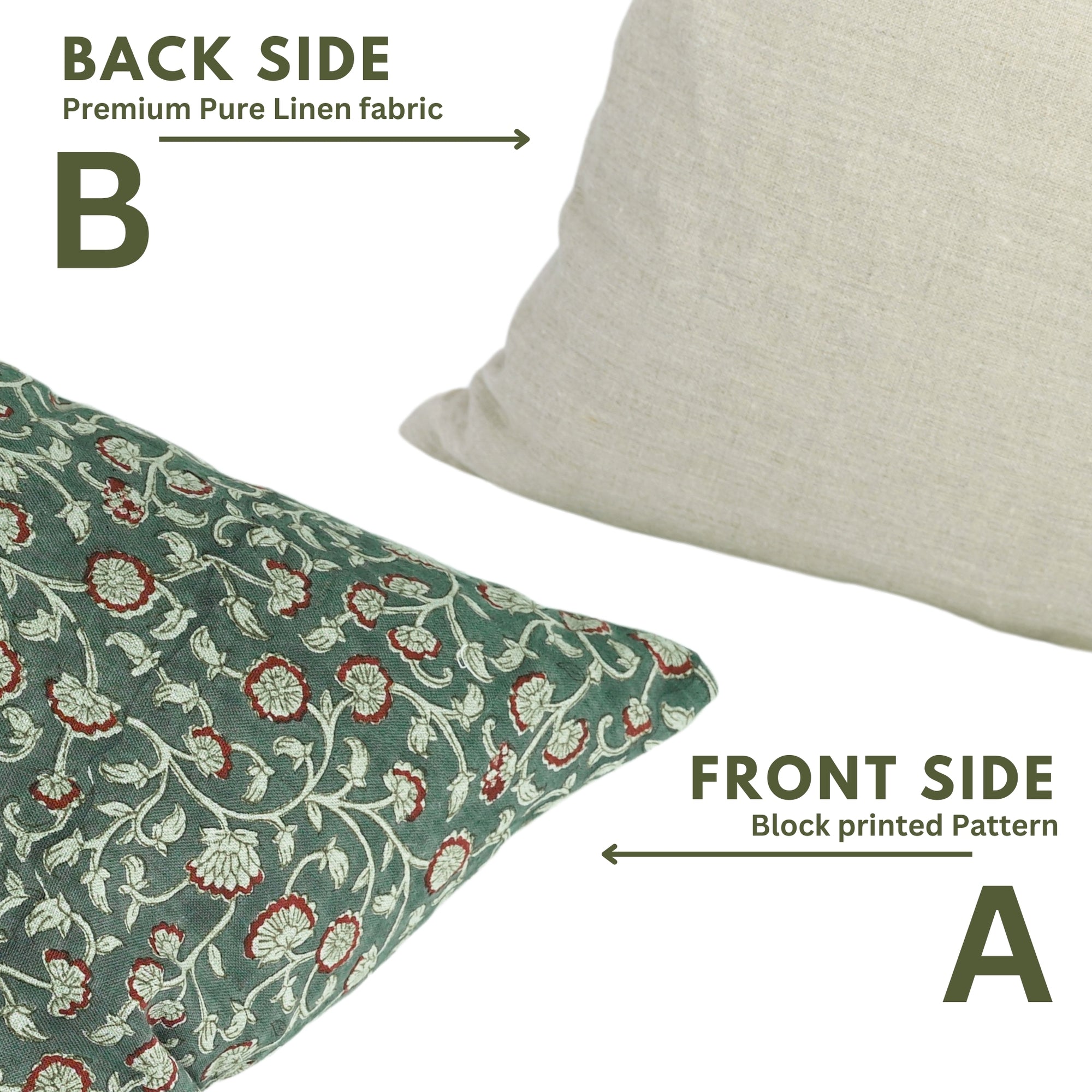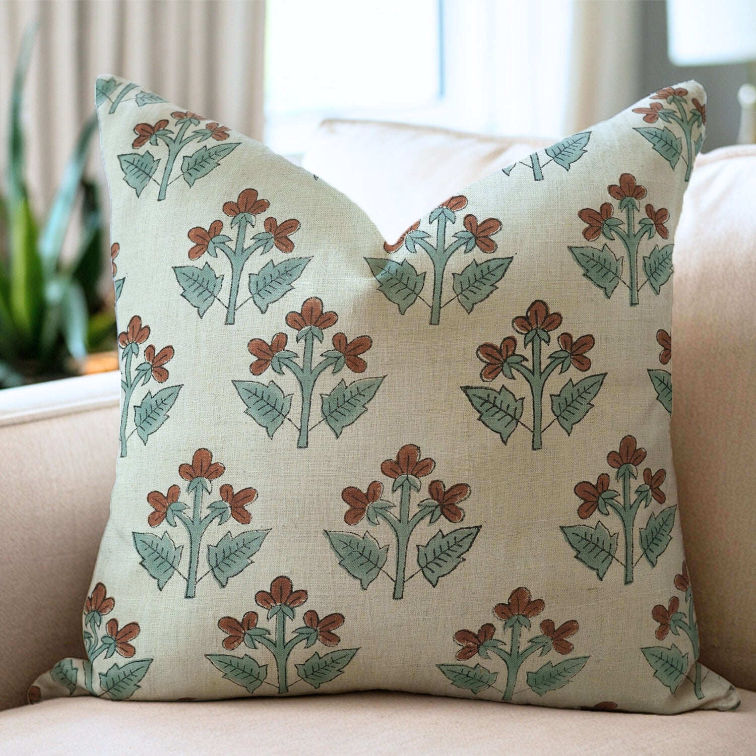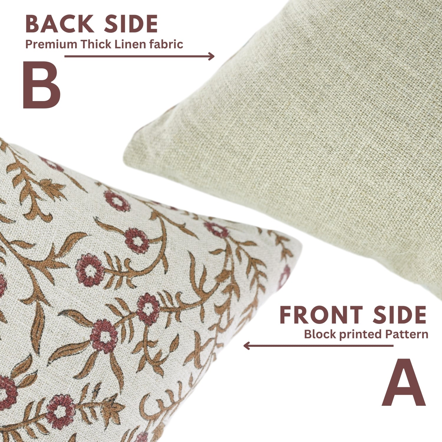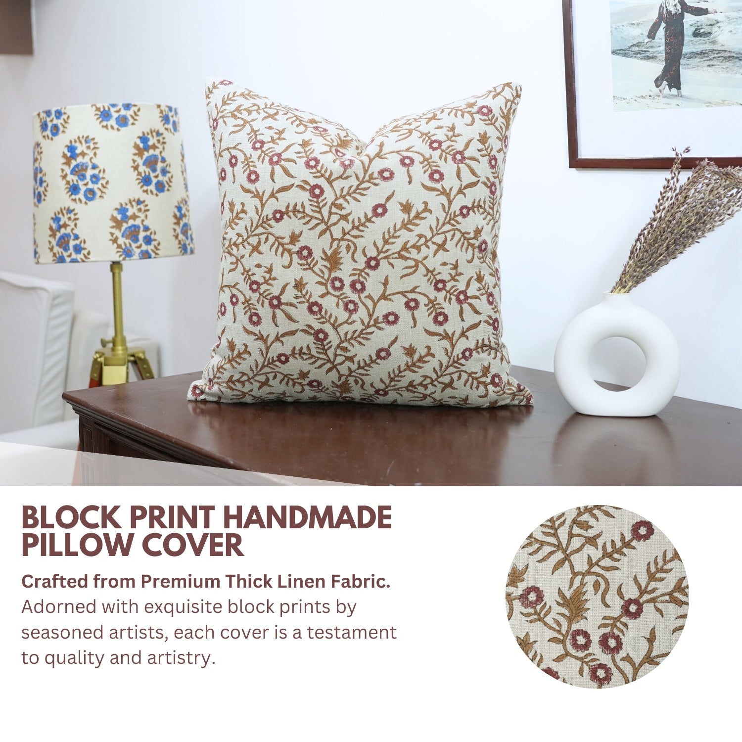 Linen Block Print Floral Pillow Covers | Handmade Cushion