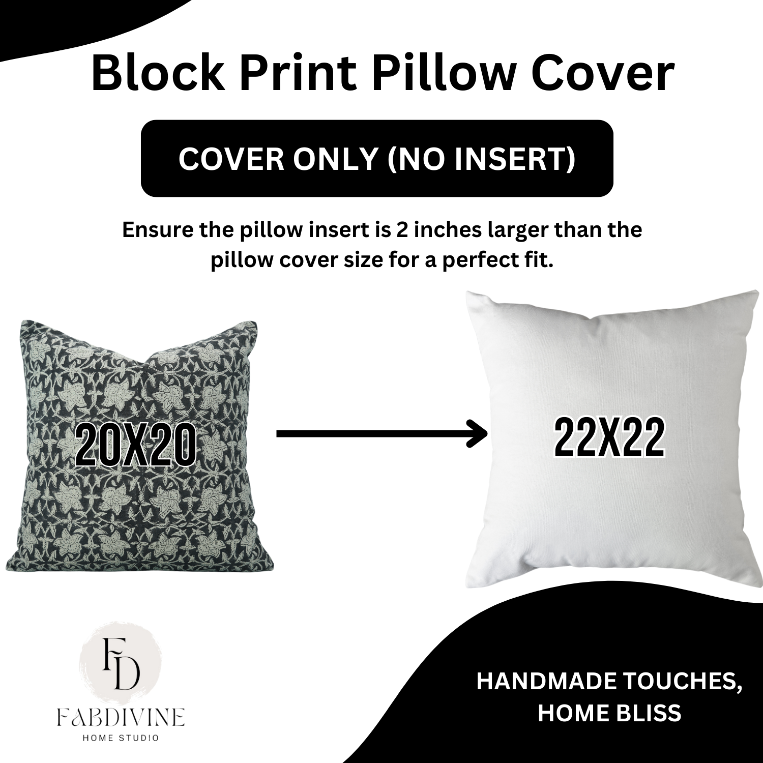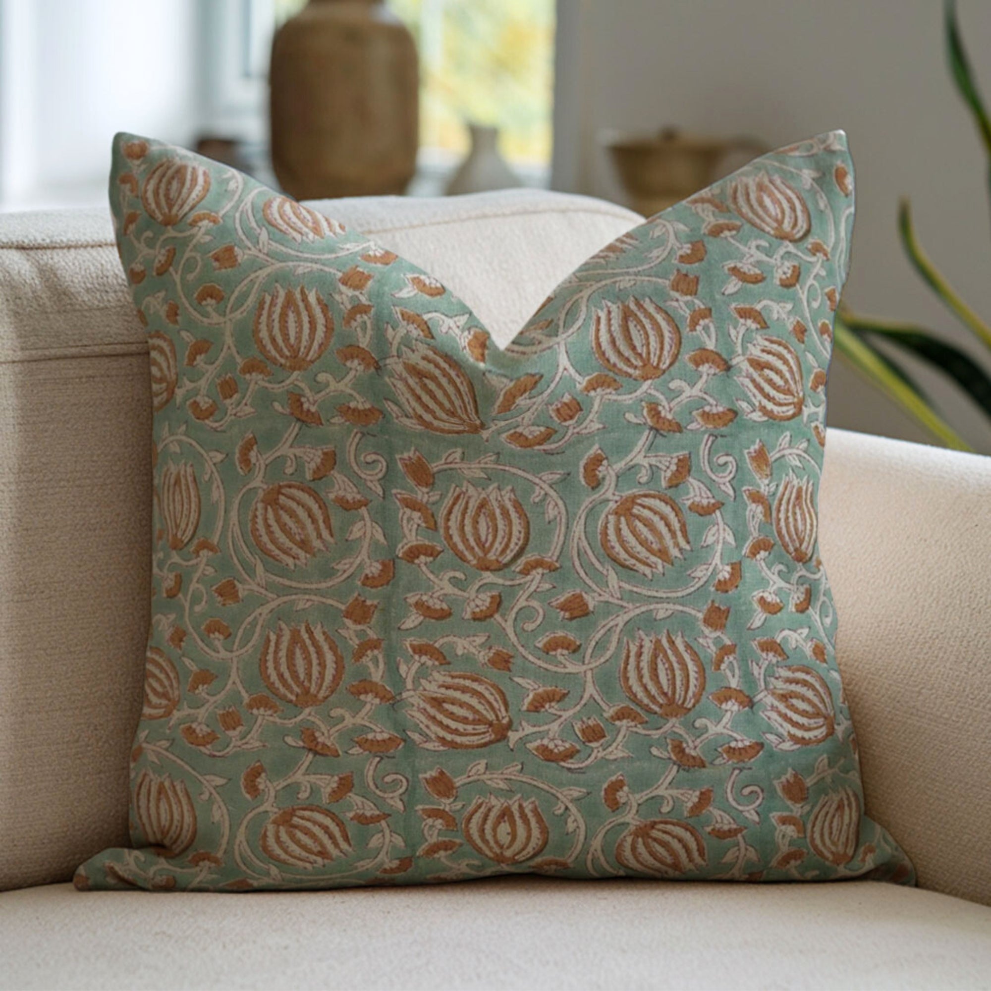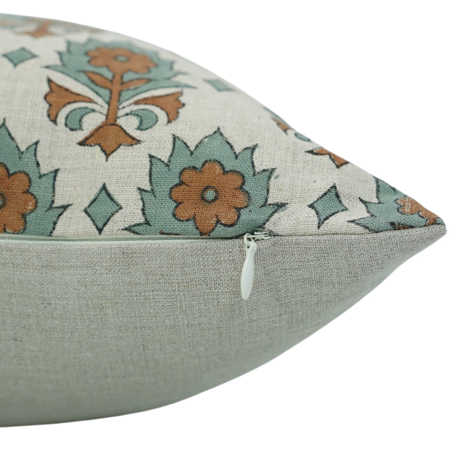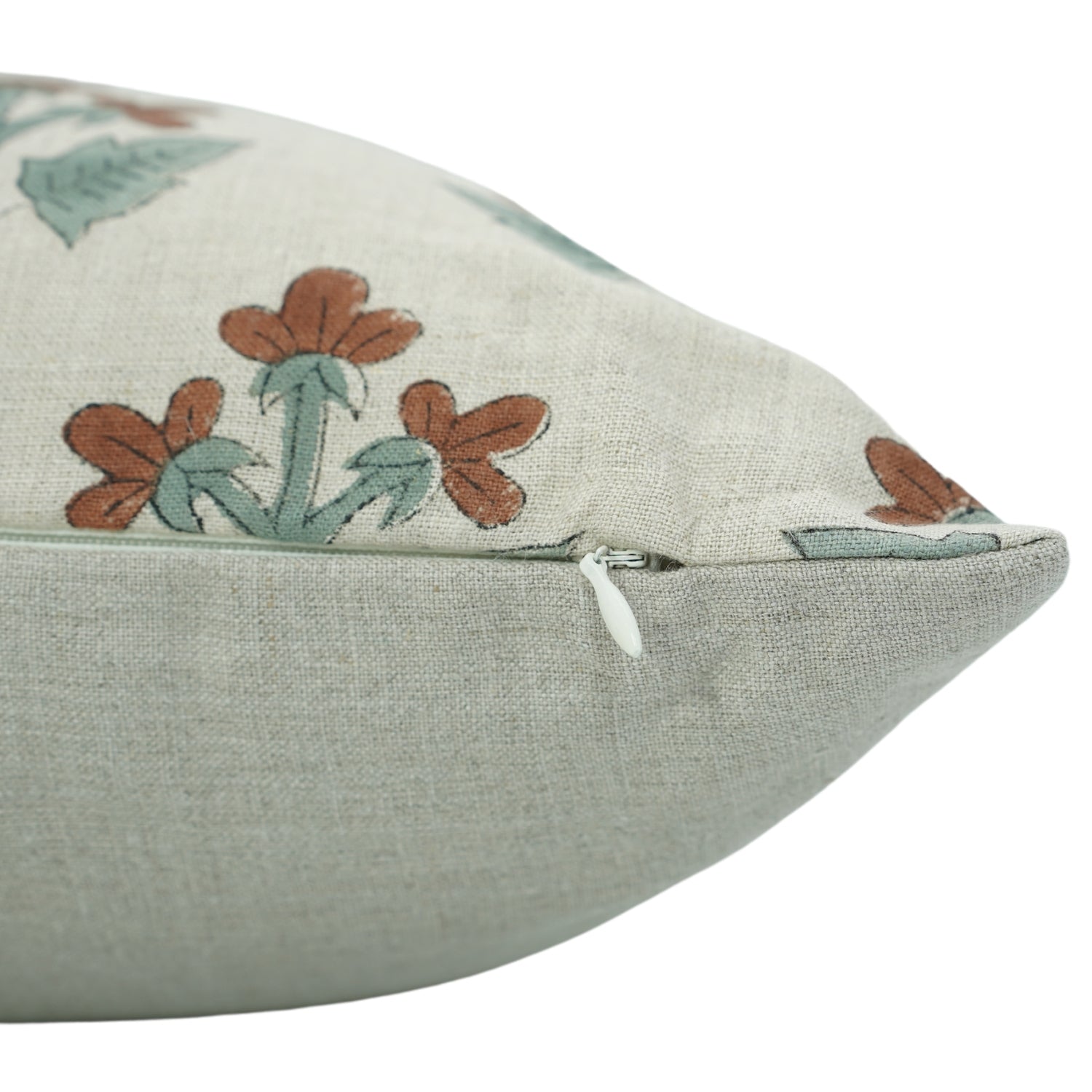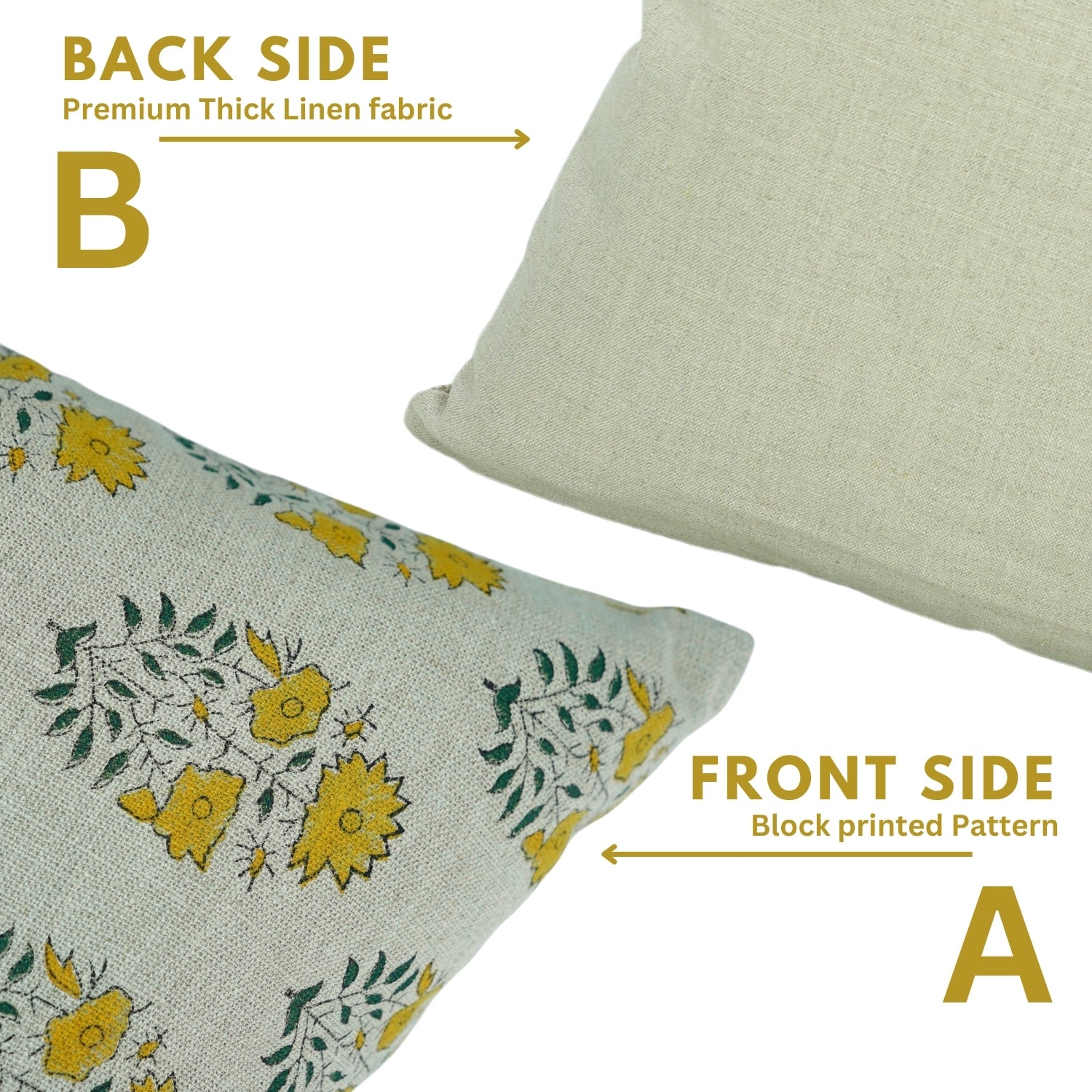 Linen Block Print Floral Pillow Covers | Handmade Cushion